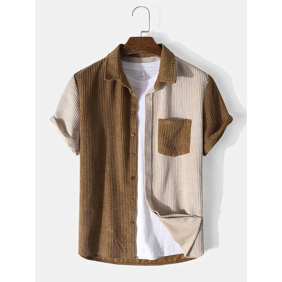 Men's Full Size Contrast Shots Sleeve Shirt and Shorts Set Plus Size