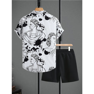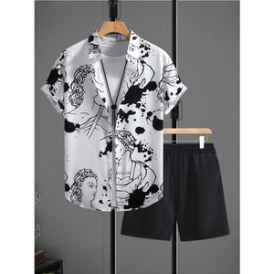 Men's Printed Button Up Shirt and Shorts Set