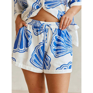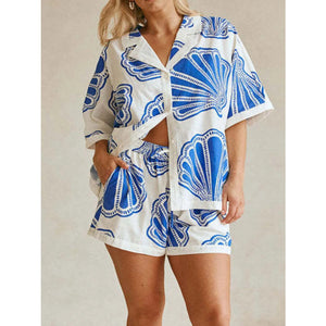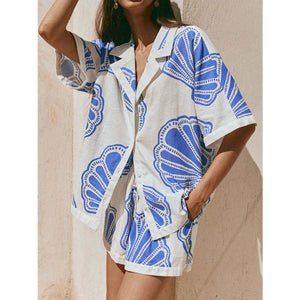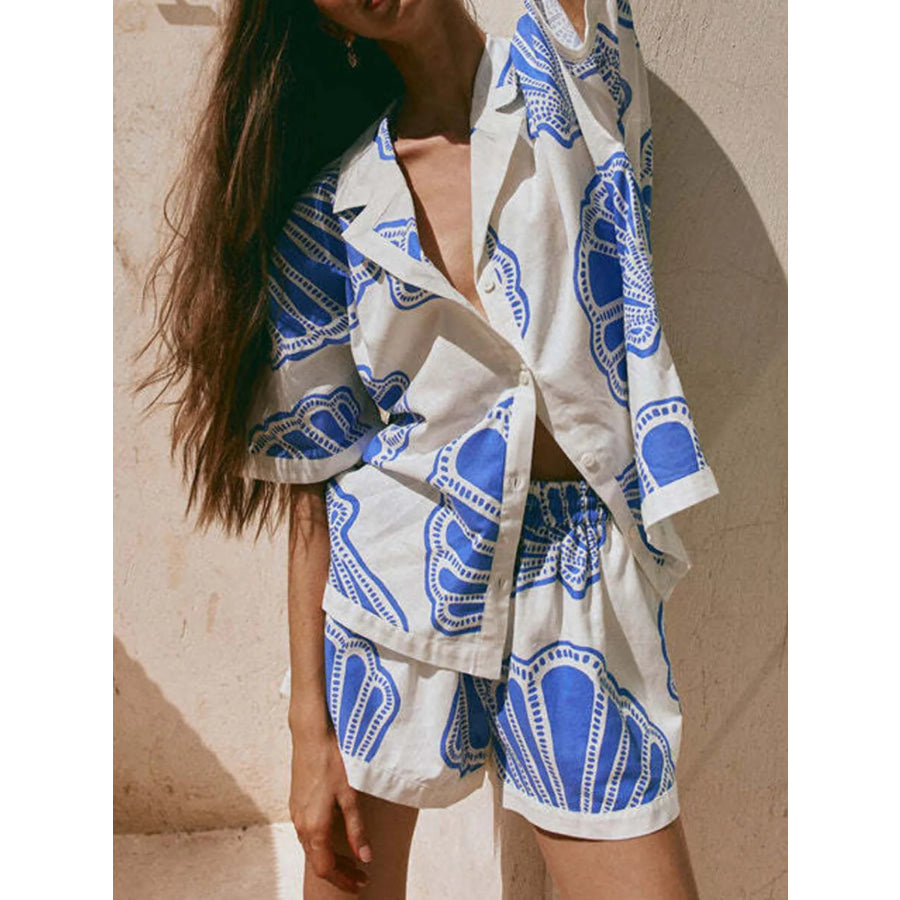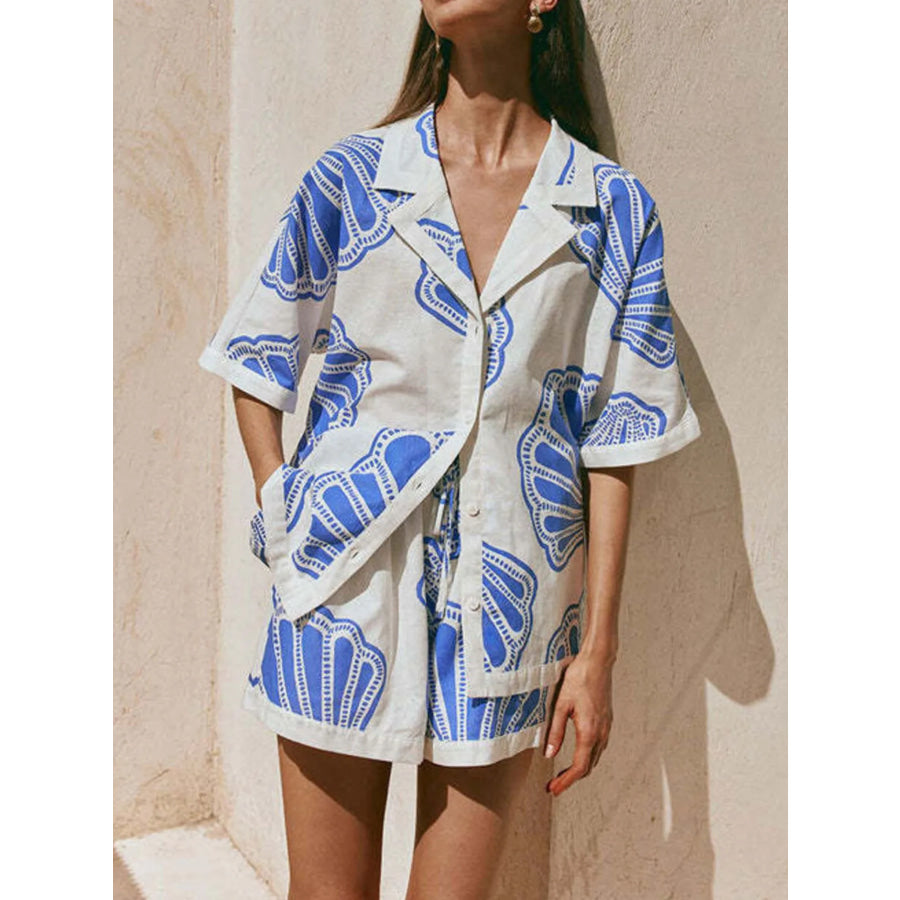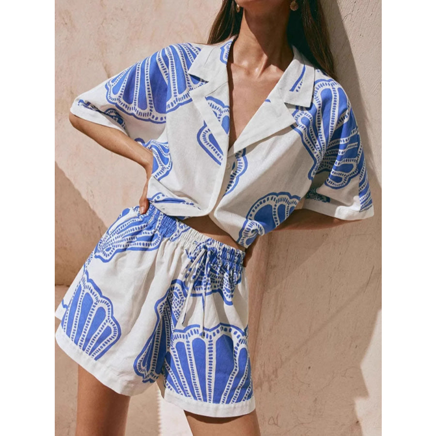 Printed Button Up Shirt and Shorts Set