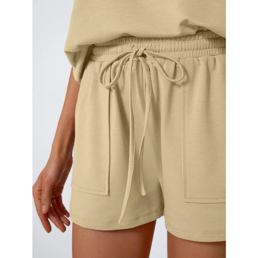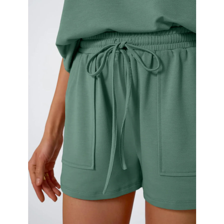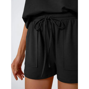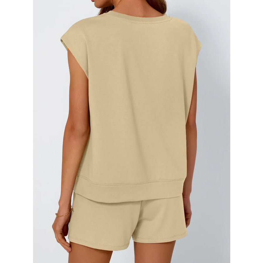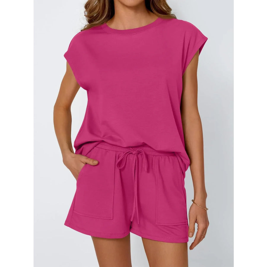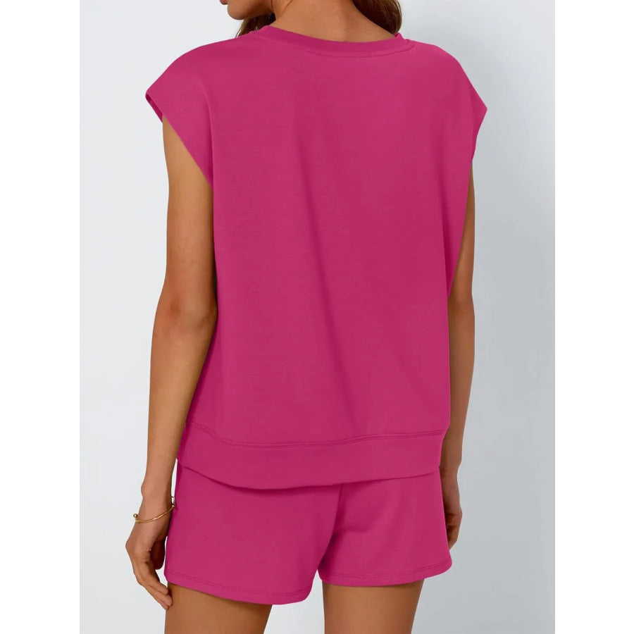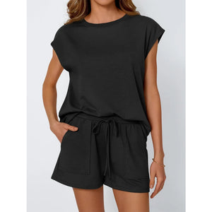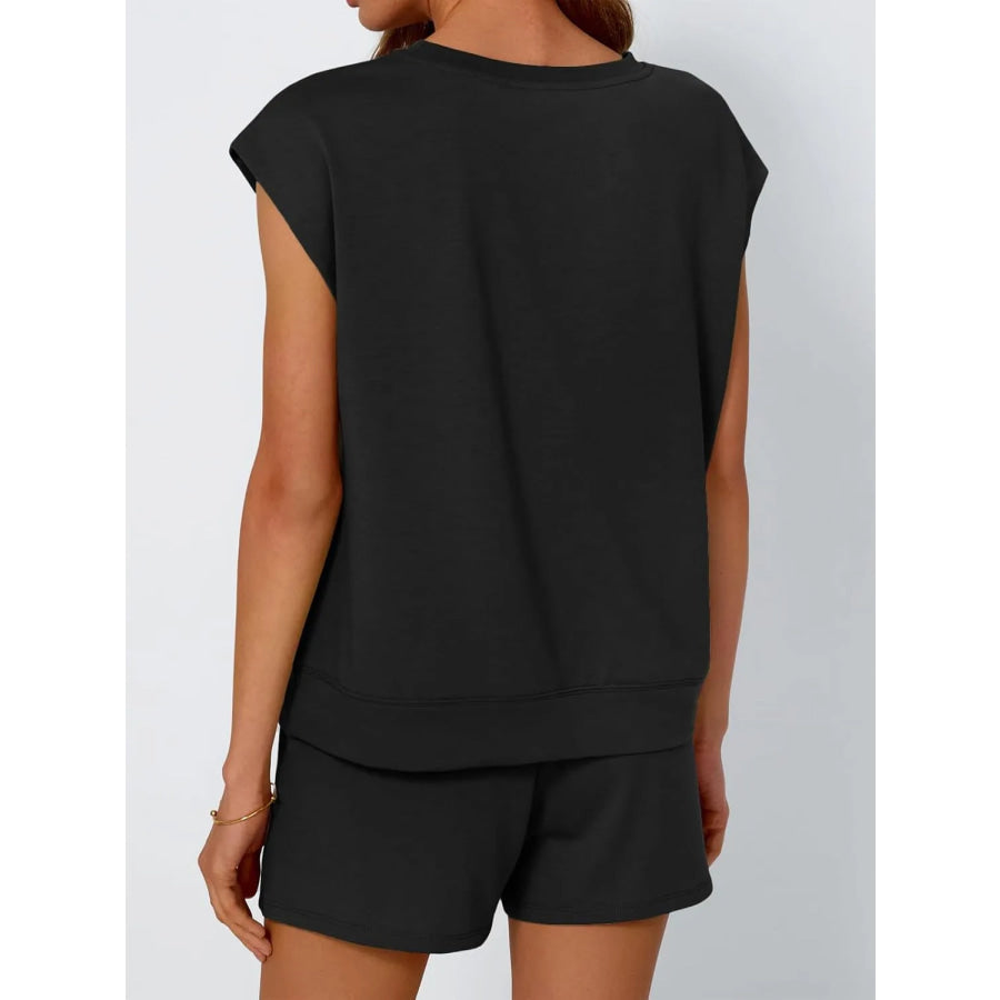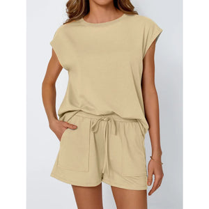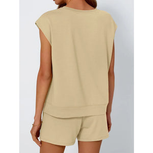 Round Neck Cap Sleeve Top and Shorts Set
