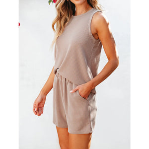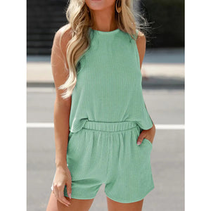 Round Neck Sleeveless Top and Shorts Set
