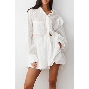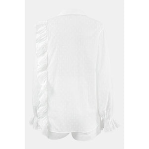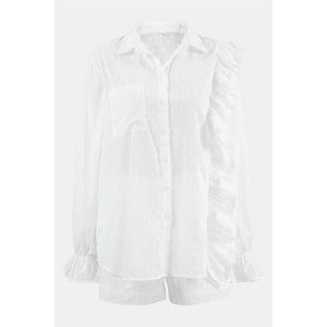Ruffled Dot Applique Collared Neck Top and Shorts Set