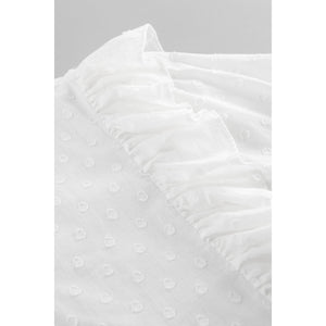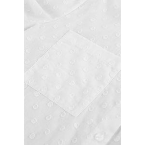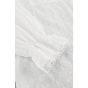 • Features: Buttoned, Pocketed, Ruffled, Swiss Dot