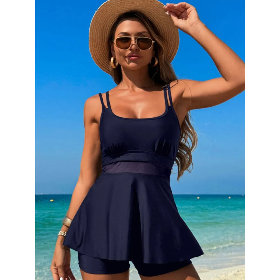 Scoop Neck Double Spaghetti Strap Top and Shorts Set