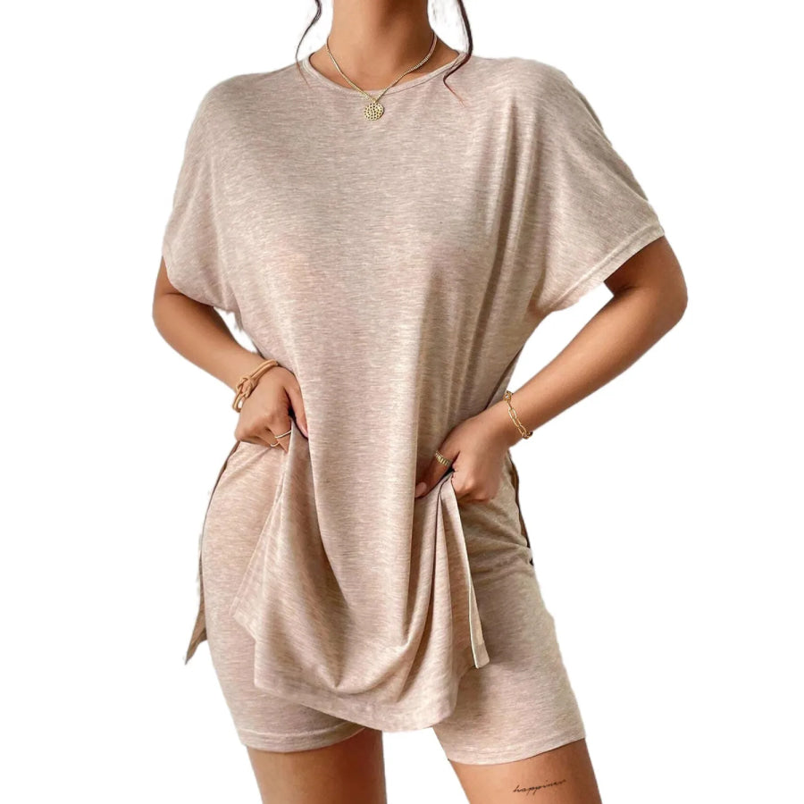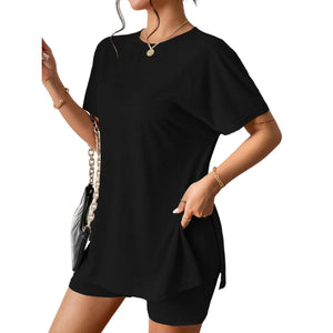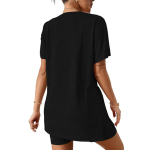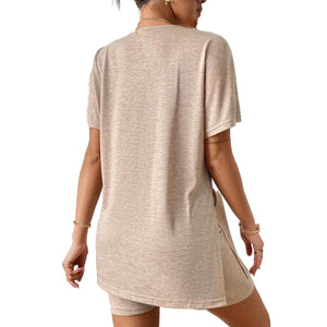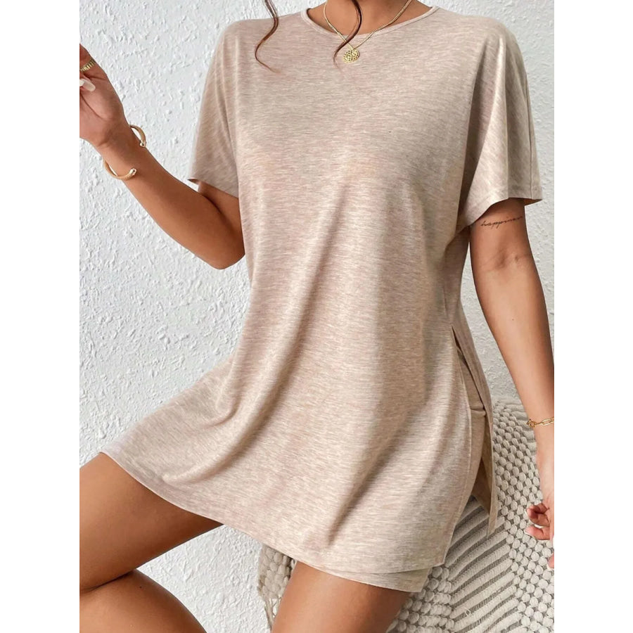 Slit Round Neck Short Sleeve Oversized Top and Shorts Set