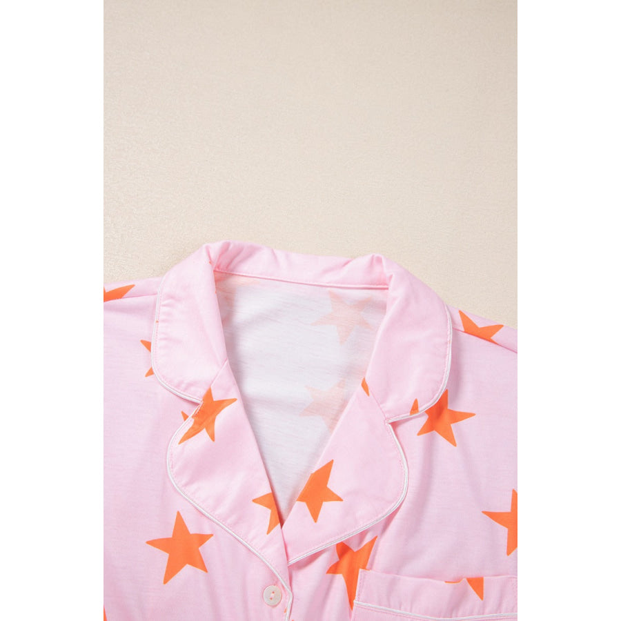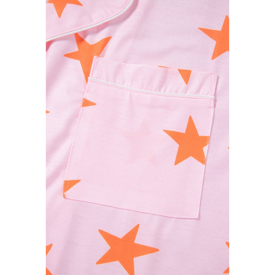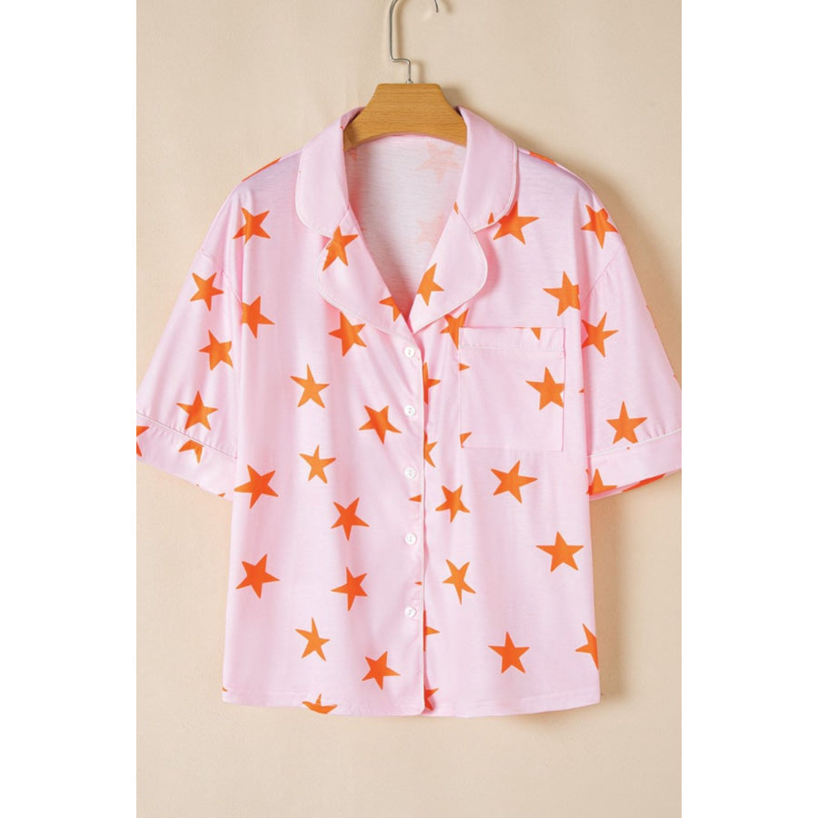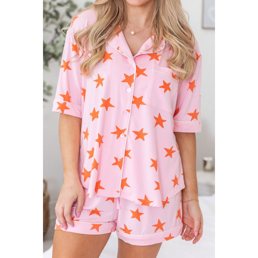Star Print Short Sleeve Shirt and Shorts Set