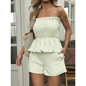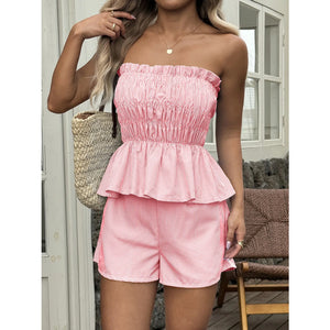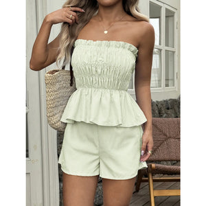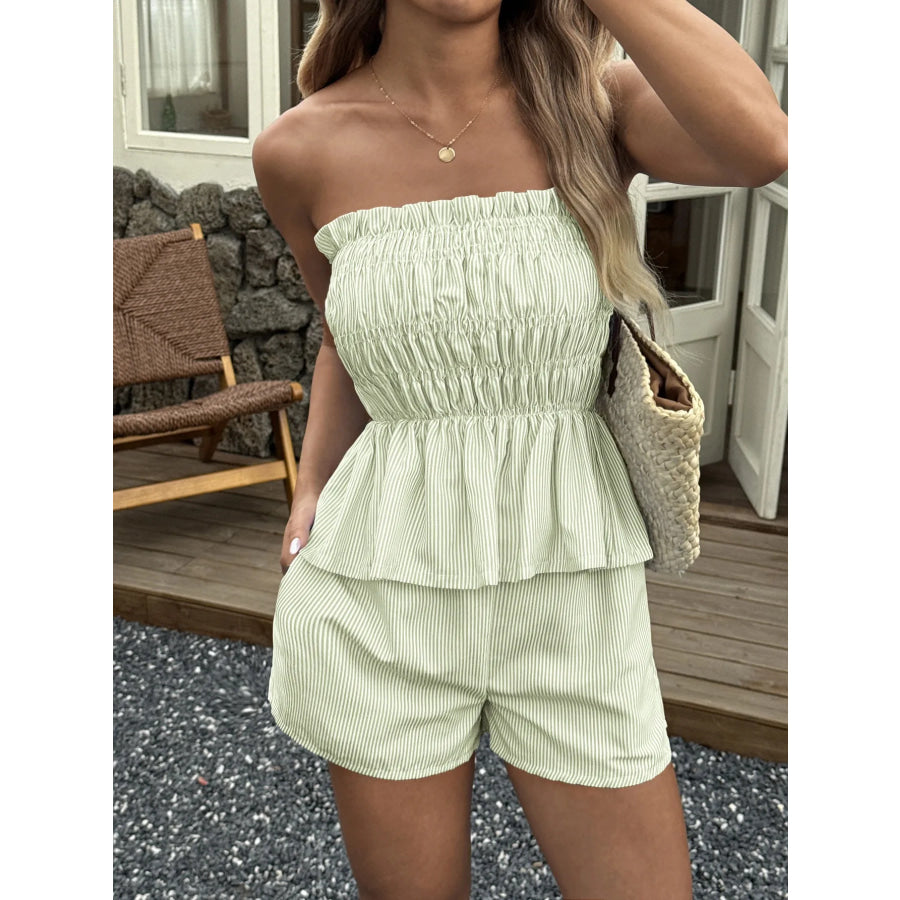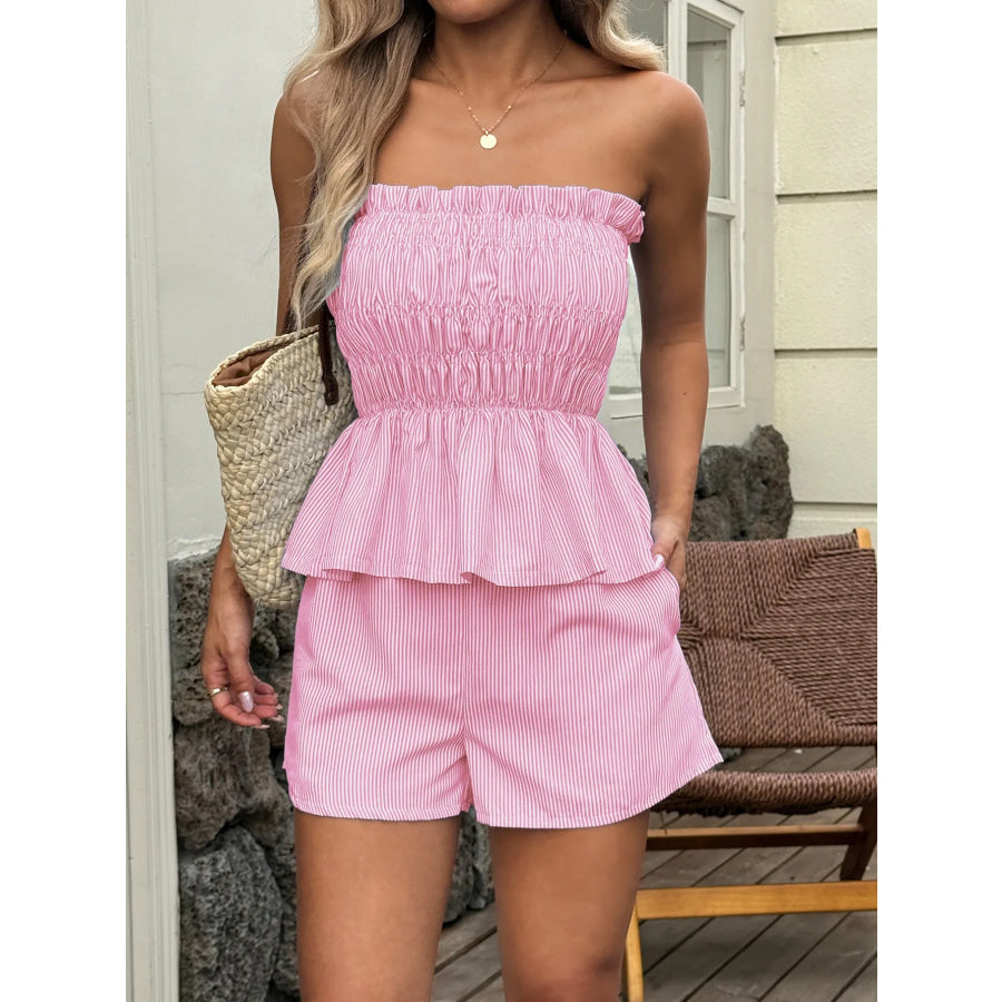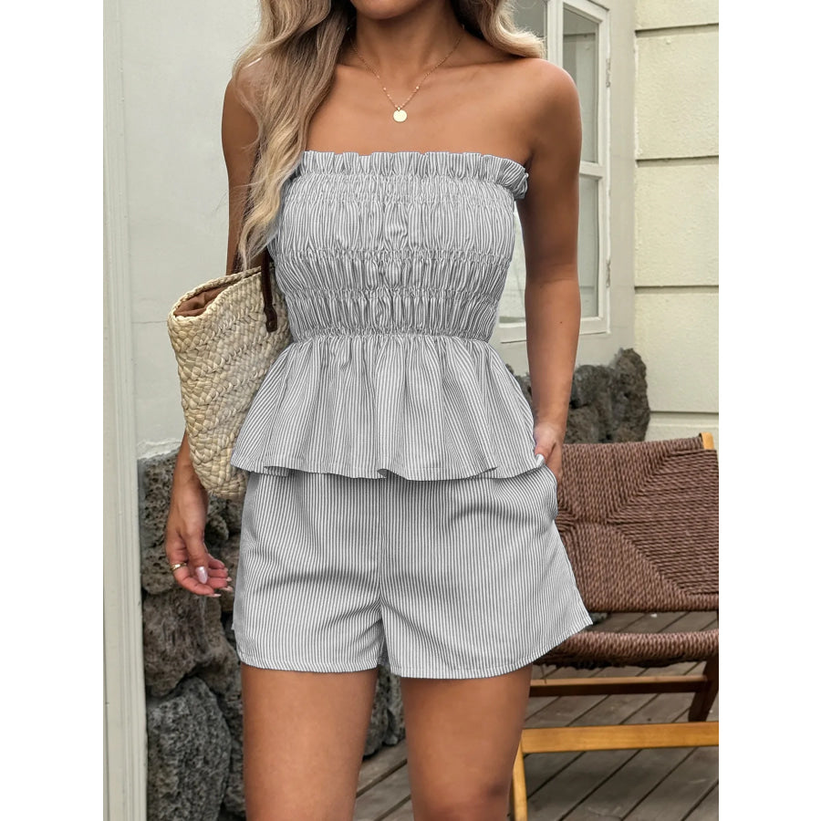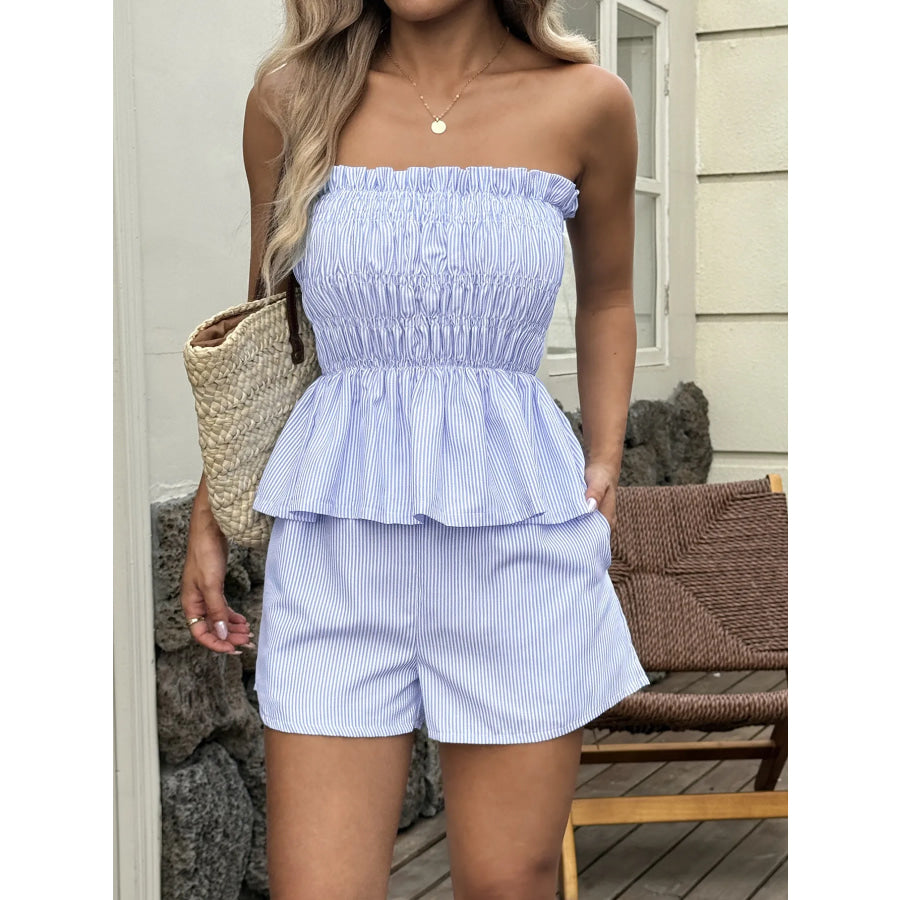 Striped Strapless Peplum Top and Shorts Two-Piece Set