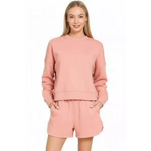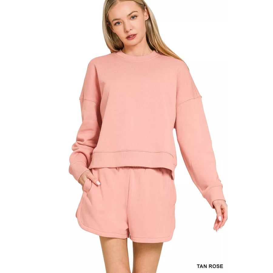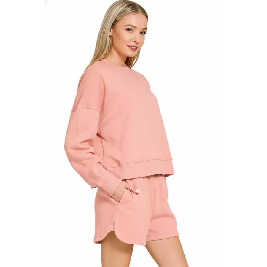 Zenana Fleece Long Sleeve Sweatshirts and Shorts Set