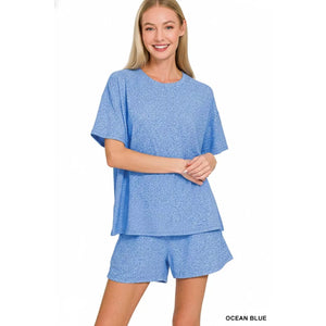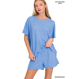 Zenana Soft Melange Short Sleeve Tee and Shorts Set