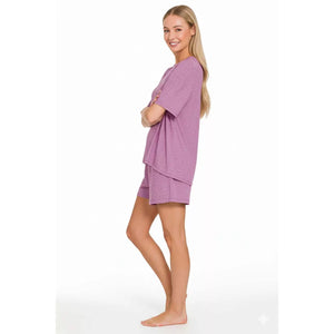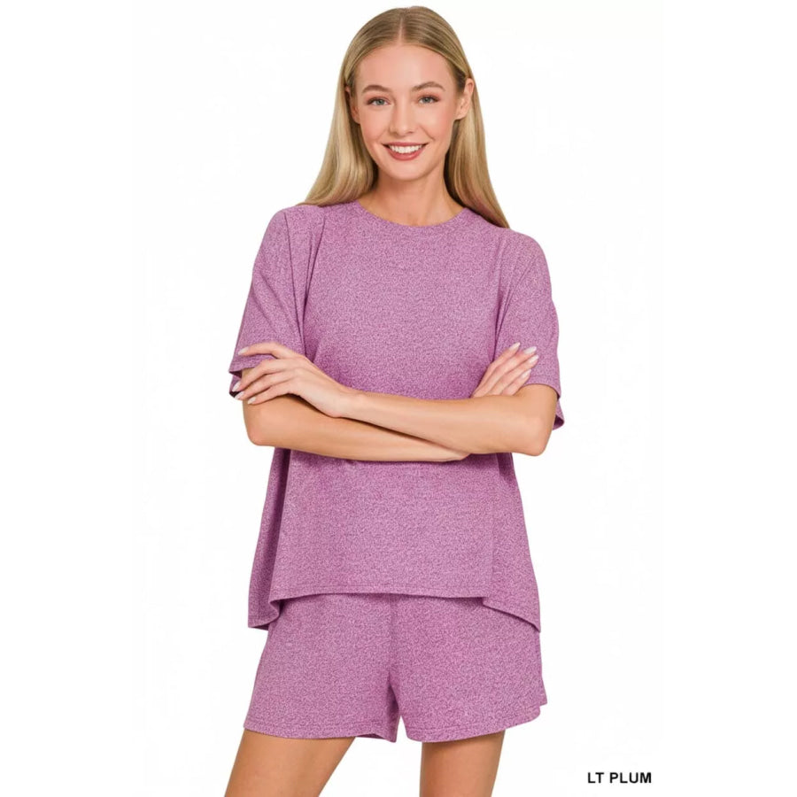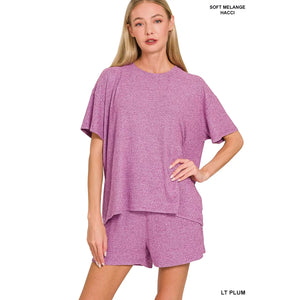 Zenana Soft Melange Short Sleeve Tee and Shorts Set