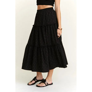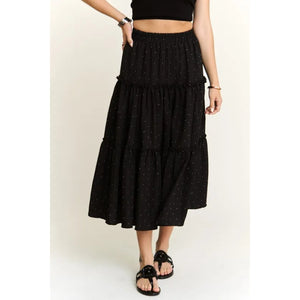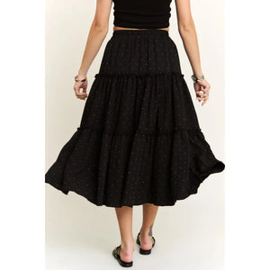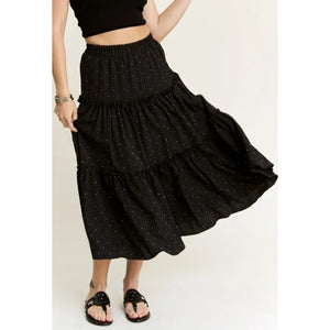 The Rhinestone Accent Tiered Skirt is a glamorous and sophisticated addition to your wardrobe. The rhinestone accents add a touch of sparkle and luxury to the skirt. The tiered design creates a beautiful and flattering silhouette. Perfect for adding a touch of elegance to any outfit, this skirt is a versatile piece for various occasions. Pair it with a simple top for a stylish and chic look!