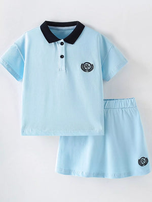 Children's Preppy Style Polo Shirt and Skirt Set