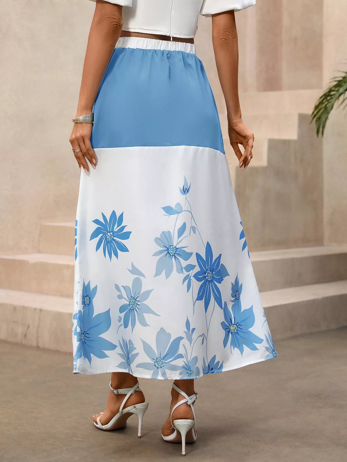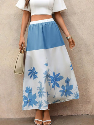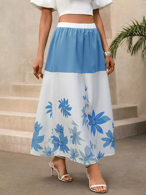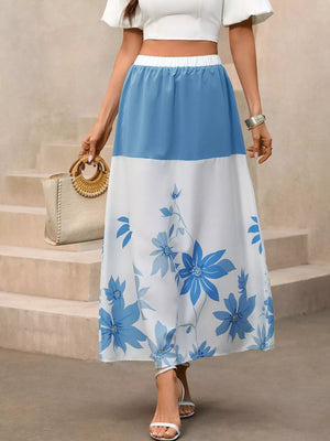 Floral Print Color Block Skirt