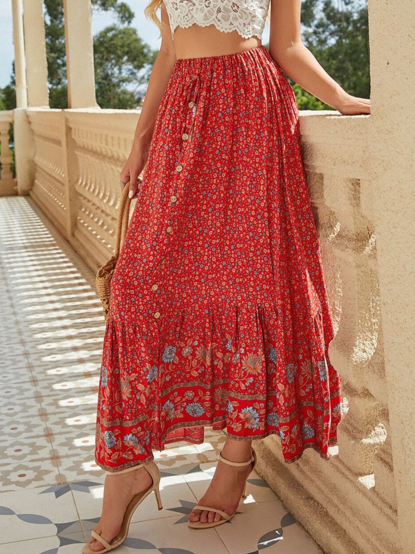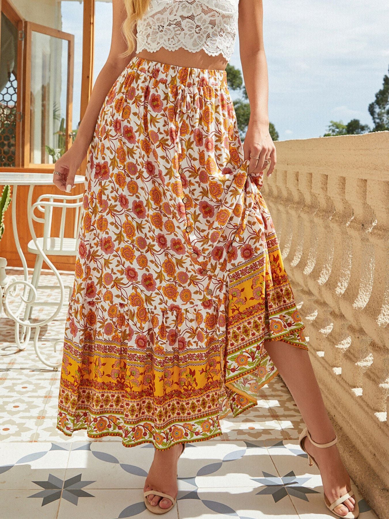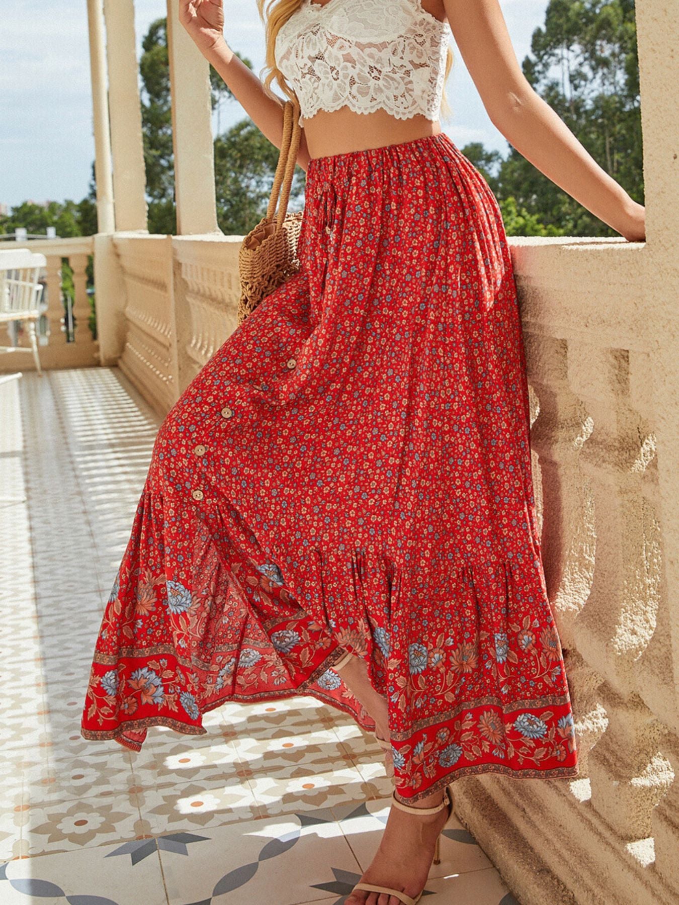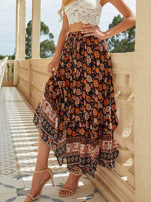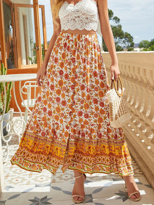 Floral Print Slit Skirt