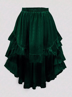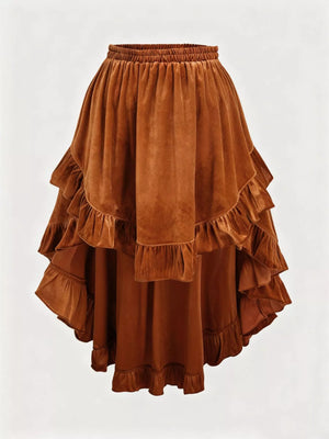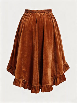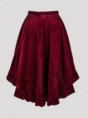 Plus Size Ruffled Velvet Elastic Waist Skirt