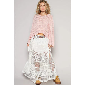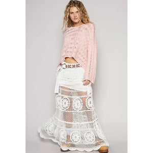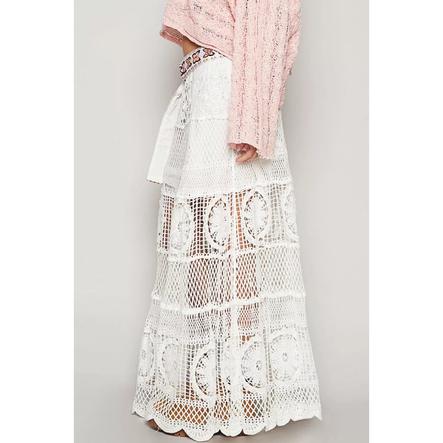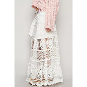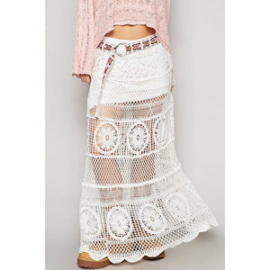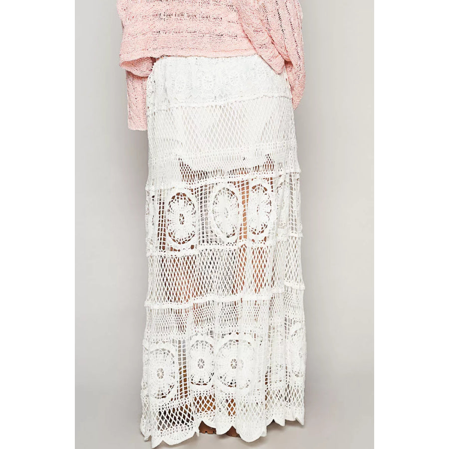 POL Crochet Floral Flared Skirt with Elastic Waist Band