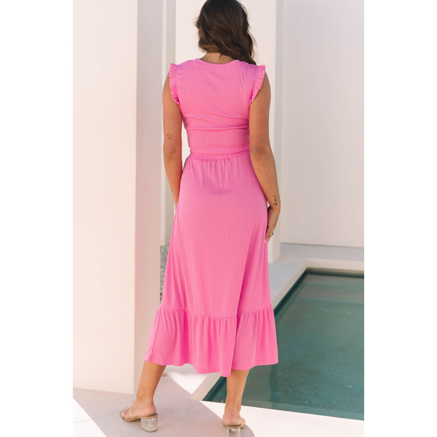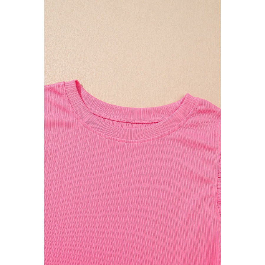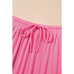Ruffle Trim Round Neck Top and Drawstring Skirt Set
