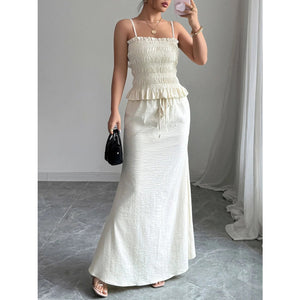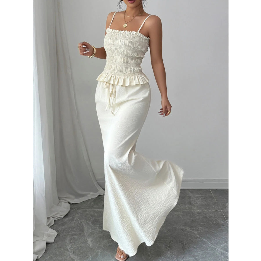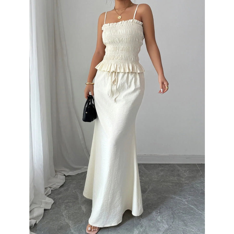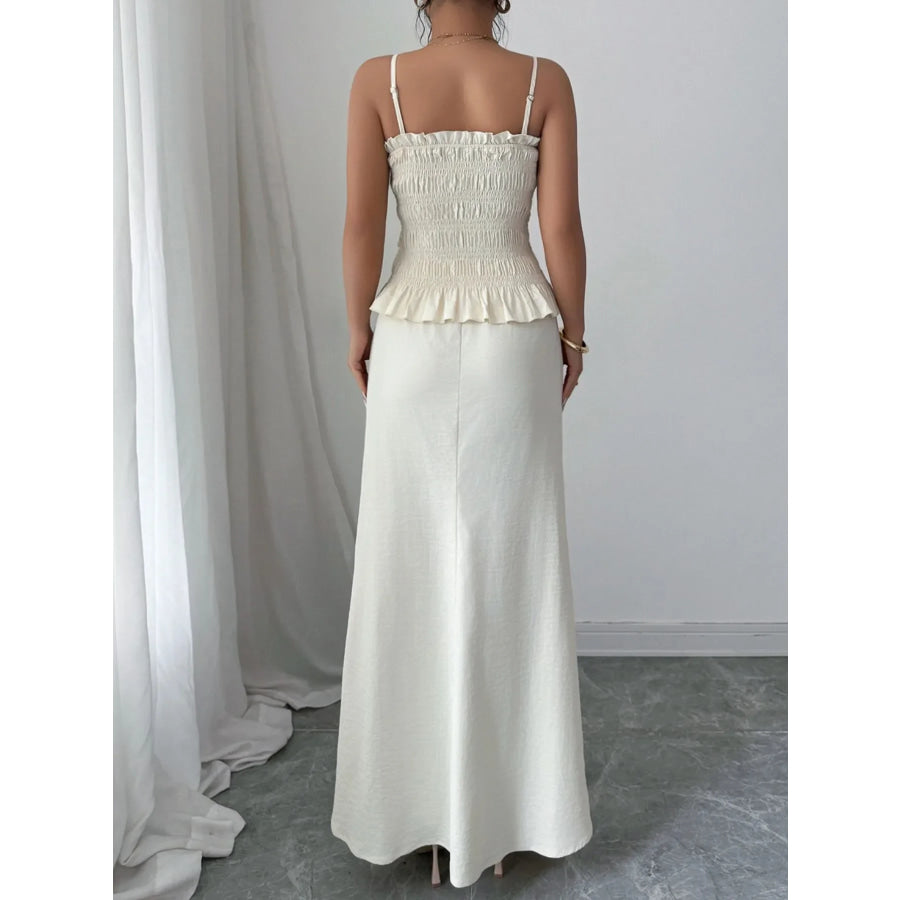 Smocked Ruffled Hem Cami and Maxi Skirt Set