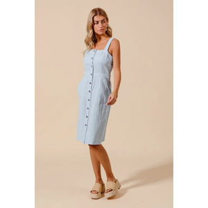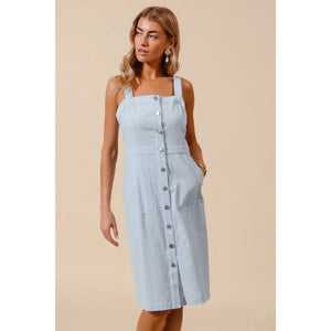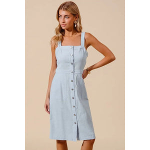 The Button Down Pocket Front Pinafore Dress is a stylish and versatile piece for your wardrobe. With a button-down front and pocket detailing, this pinafore dress offers a classic and chic look. The pinafore style is perfect for layering over tops, making it a versatile option for different seasons. Pair it with a t-shirt or blouse underneath for a cute and trendy outfit.