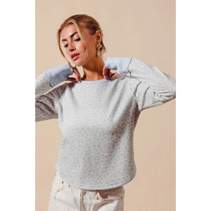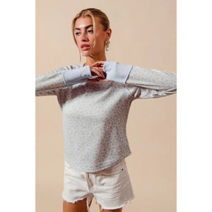 SO ME Textued Floral Knit Top with Contrast Cuffs