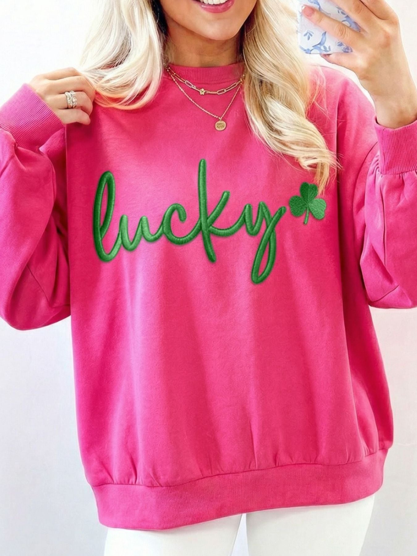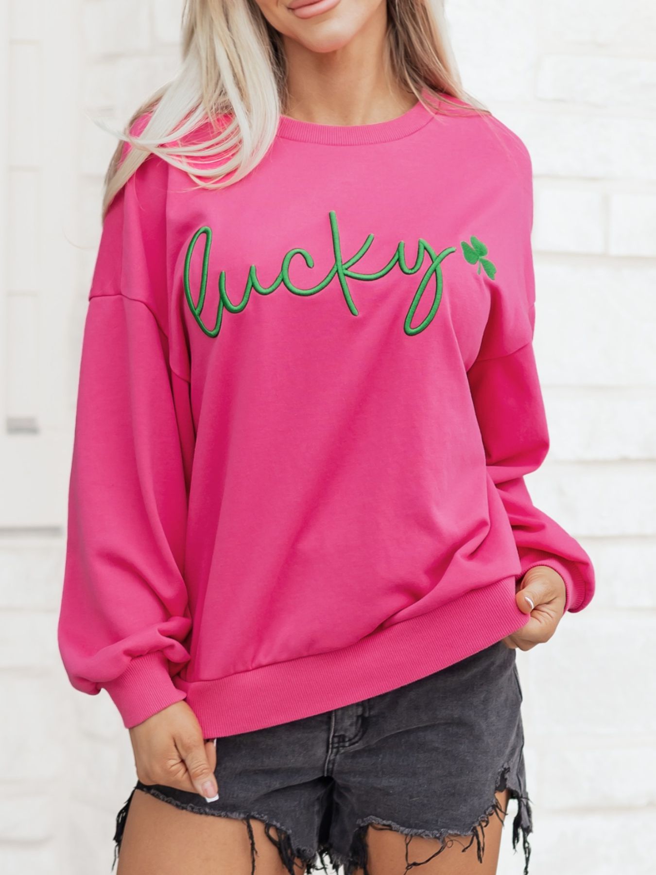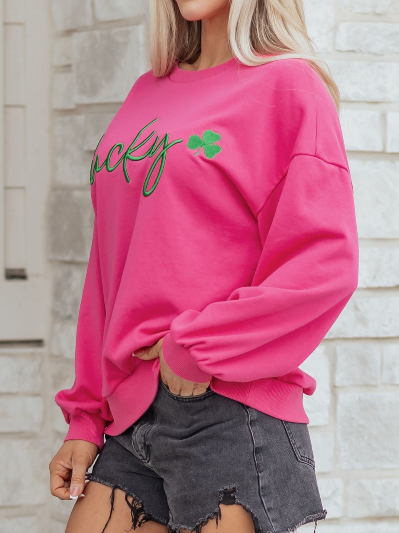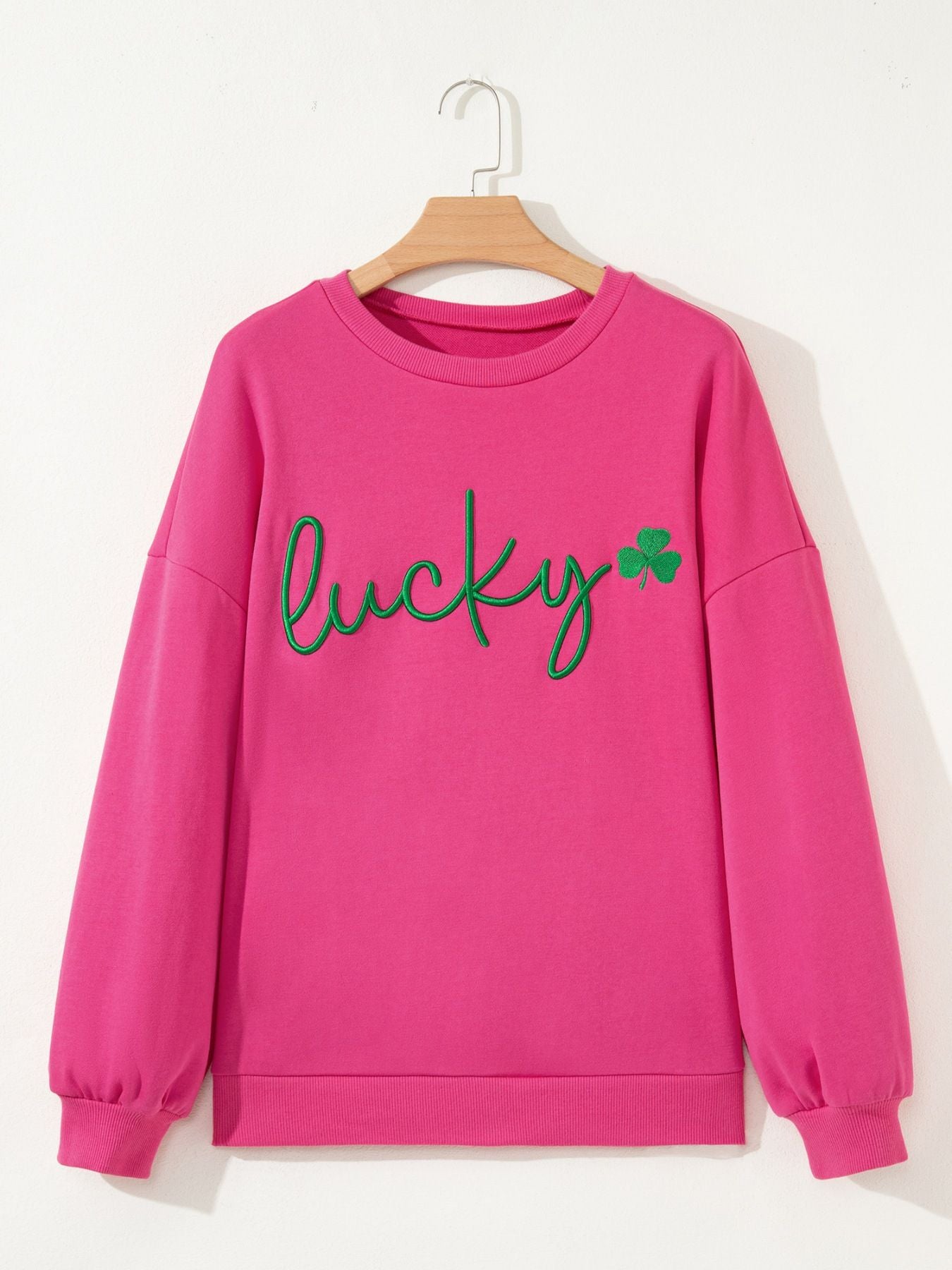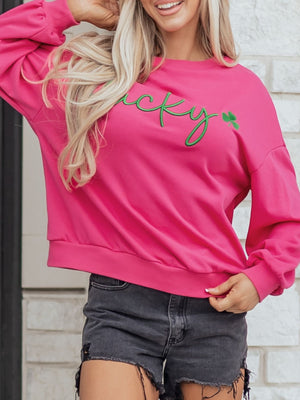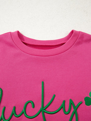 Lucky Clover Embroidered Loose Pullover Sweatshirt