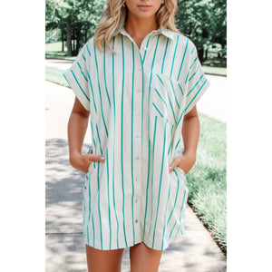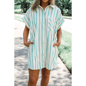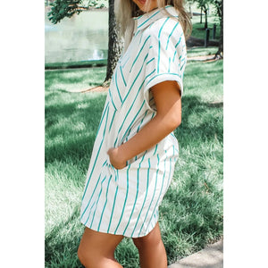 St Patricks Striped Wide Short Sleeve Shift Mini Shirt Dress