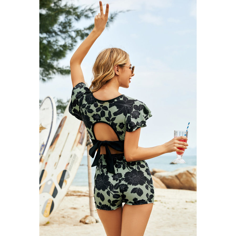 Botanical Print Flutter Sleeve Two-Piece Swim Set