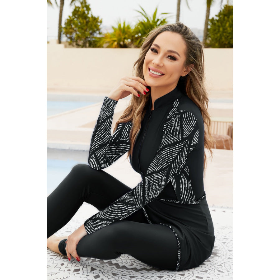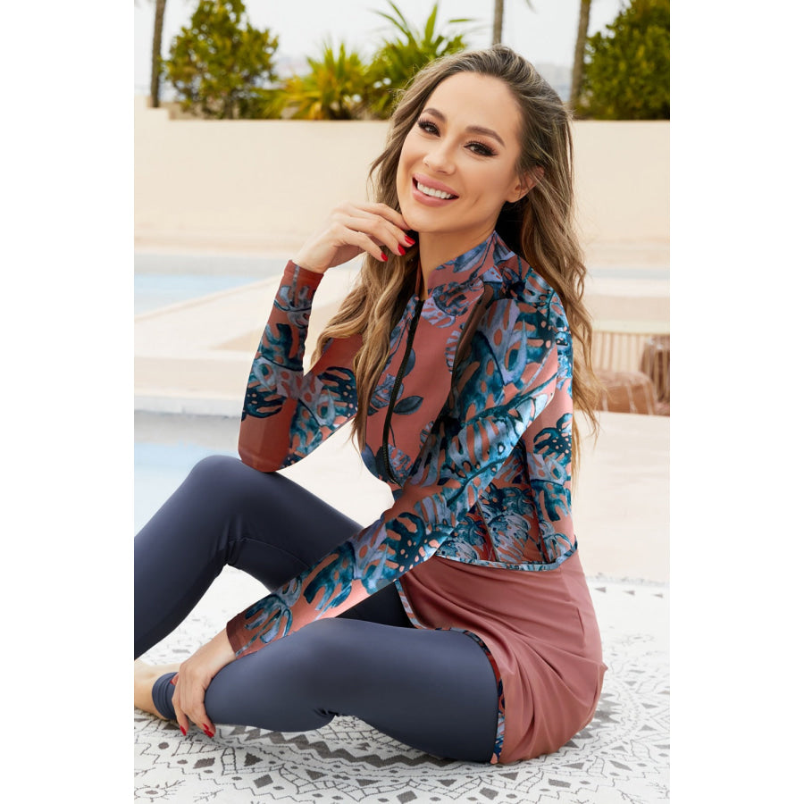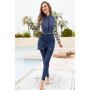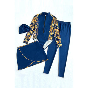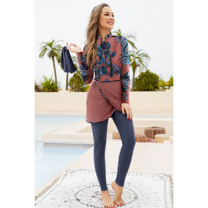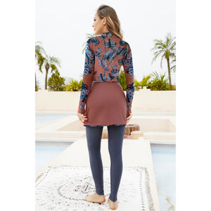 Cap, Printed Long Sleeve Swimwear, Pants and Mini Skirt Four-Piece Swim Set