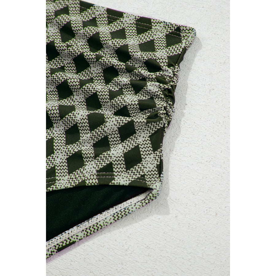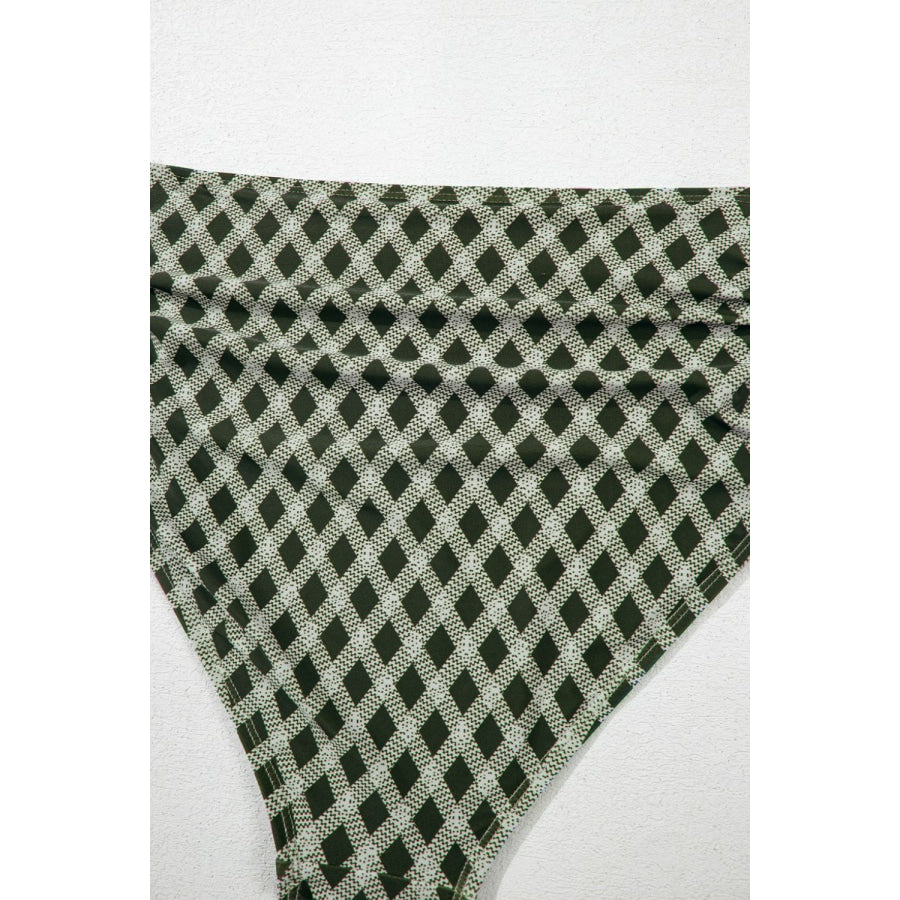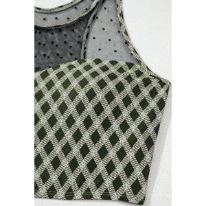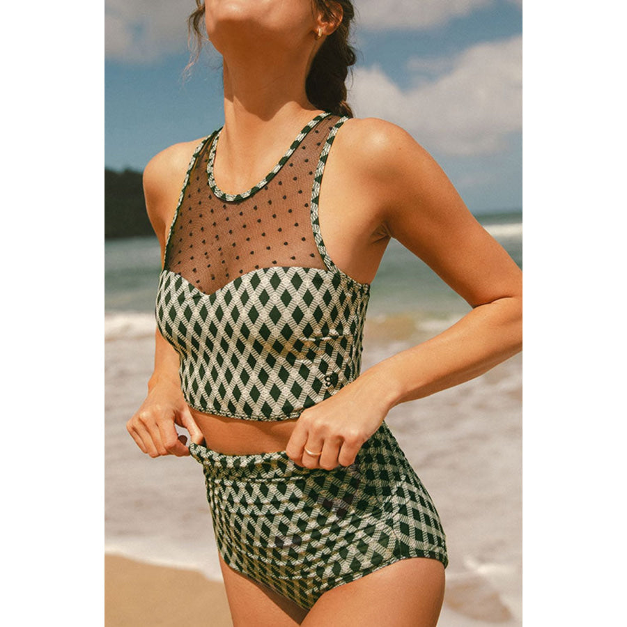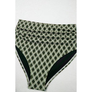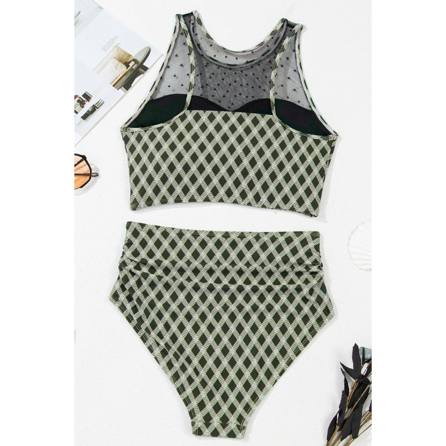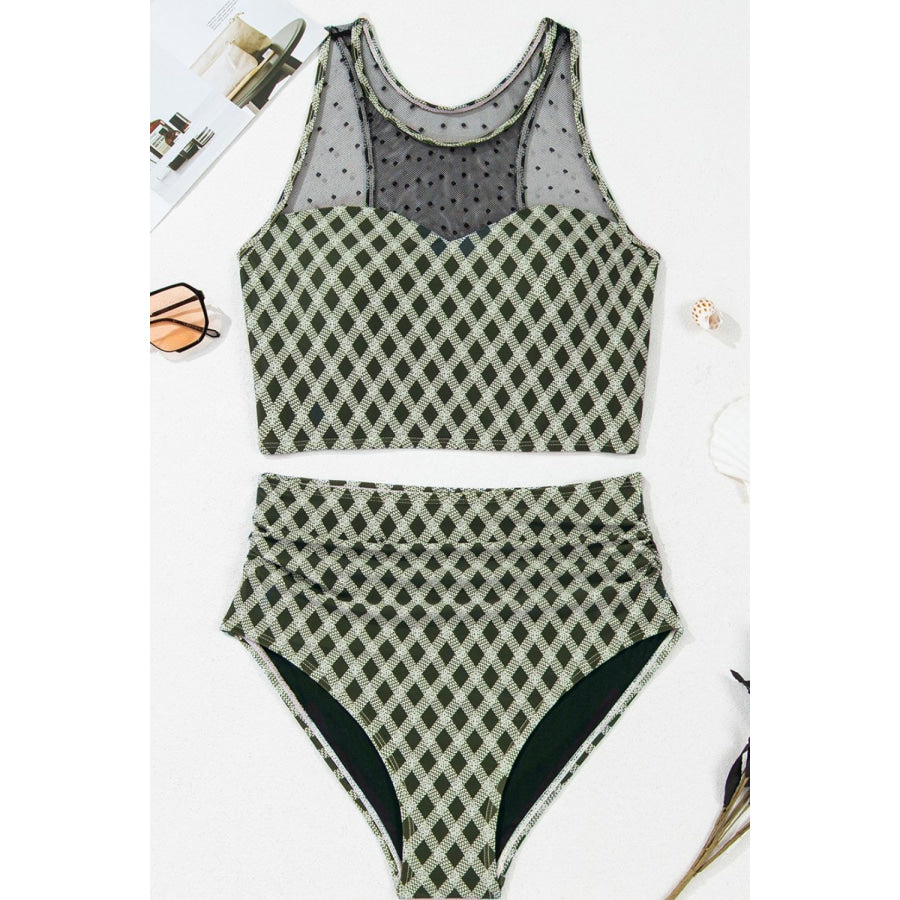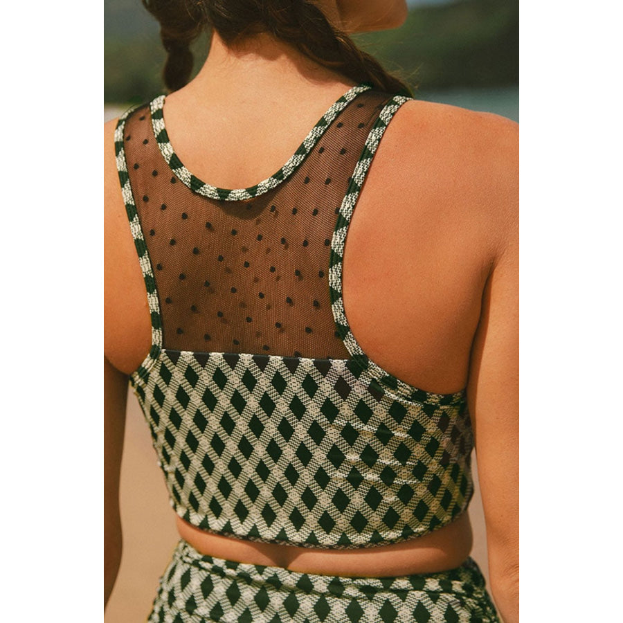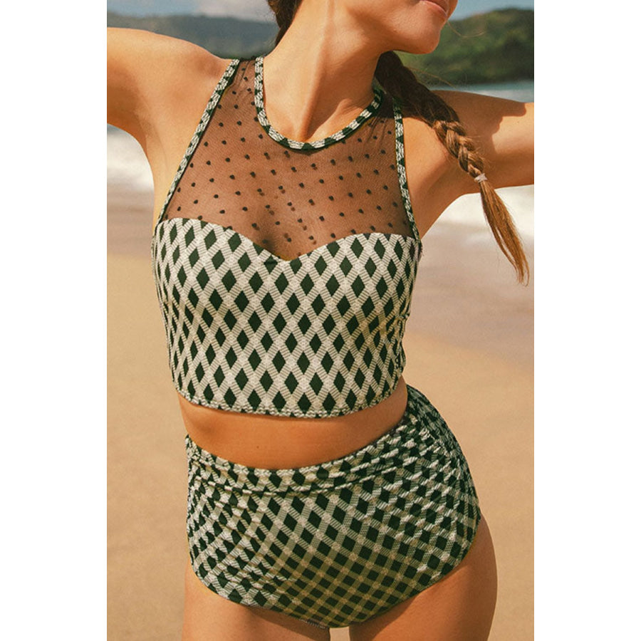 Dotted Mesh Plaid Patchwork High Waisted Swim Set