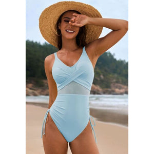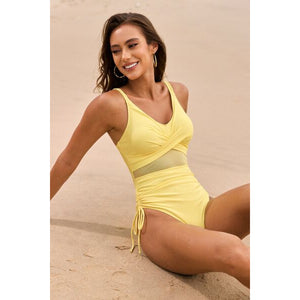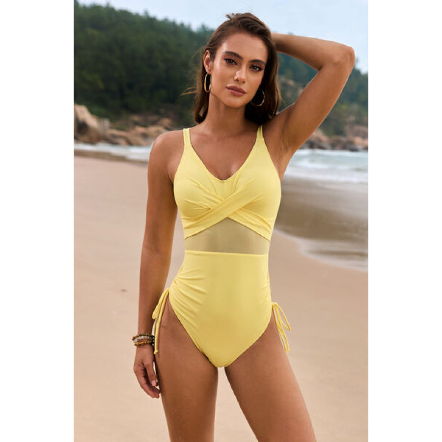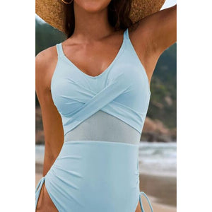 Drawstring Ruched V-Neck One-Piece Swimwear