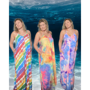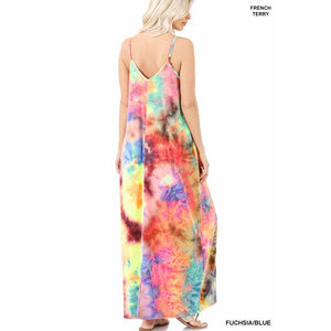 NEW! French Terry Tie Dye V-Neck Cami Maxi Dress with Pockets
