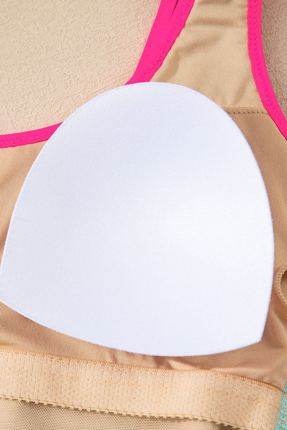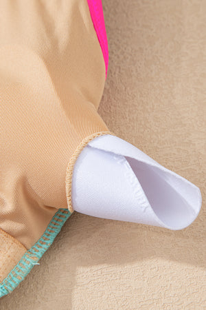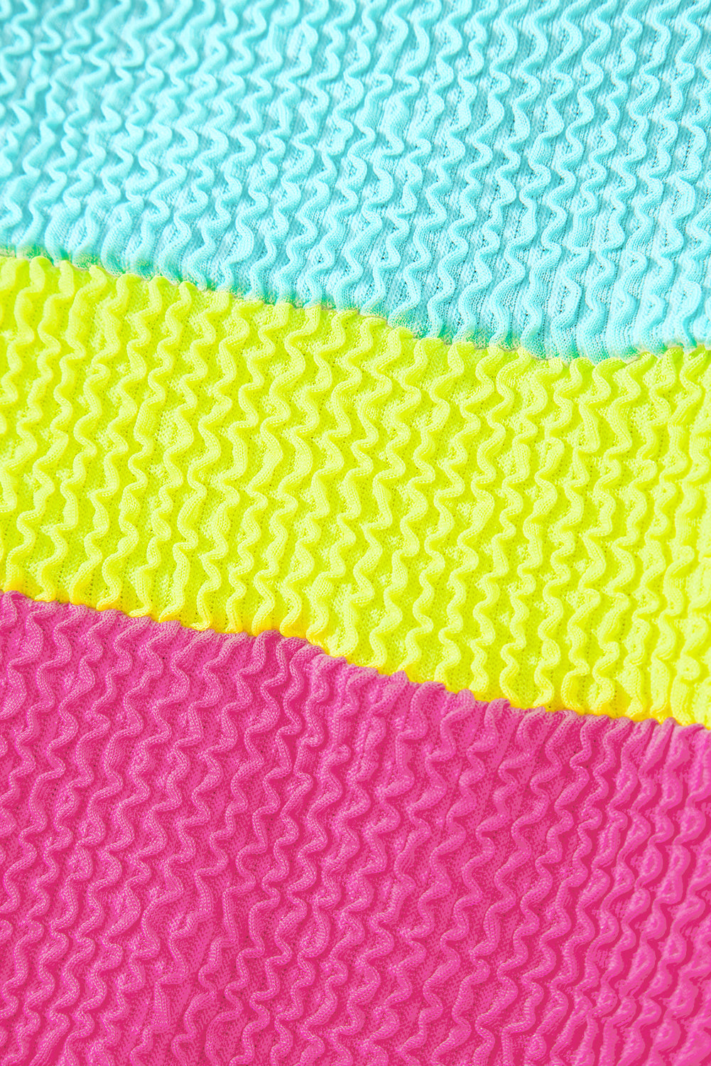Iceland Blue Textured Color Block Patchwork One Piece Swimsuit