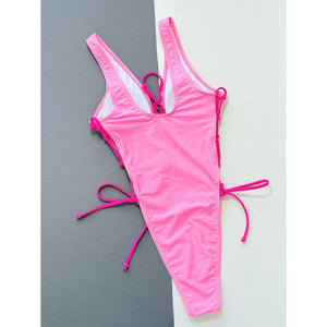 Lace-Up Deep V Sleeveless One-Piece Swimsuit