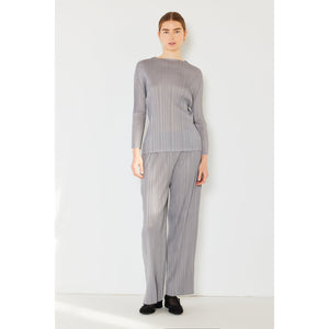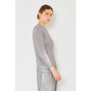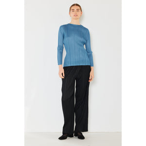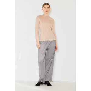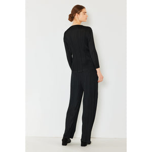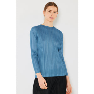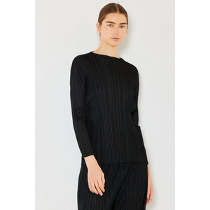 The pleated long sleeve boatneck top is a sophisticated and versatile addition to any wardrobe. The pleats add an elegant and stylish detail to the classic boatneck neckline. With long sleeves, this top is perfect for transitioning between seasons. The boatneck design offers a flattering and timeless silhouette. This top can be paired easily with jeans for a casual look or dressed up with trousers for a more polished outfit. Overall, the pleated long sleeve boatneck top is a chic and versatile choice for a variety of occasions.