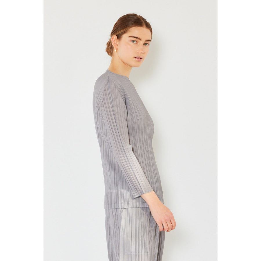 Marina West Swim Pleated Long Sleeve Boatneck Top