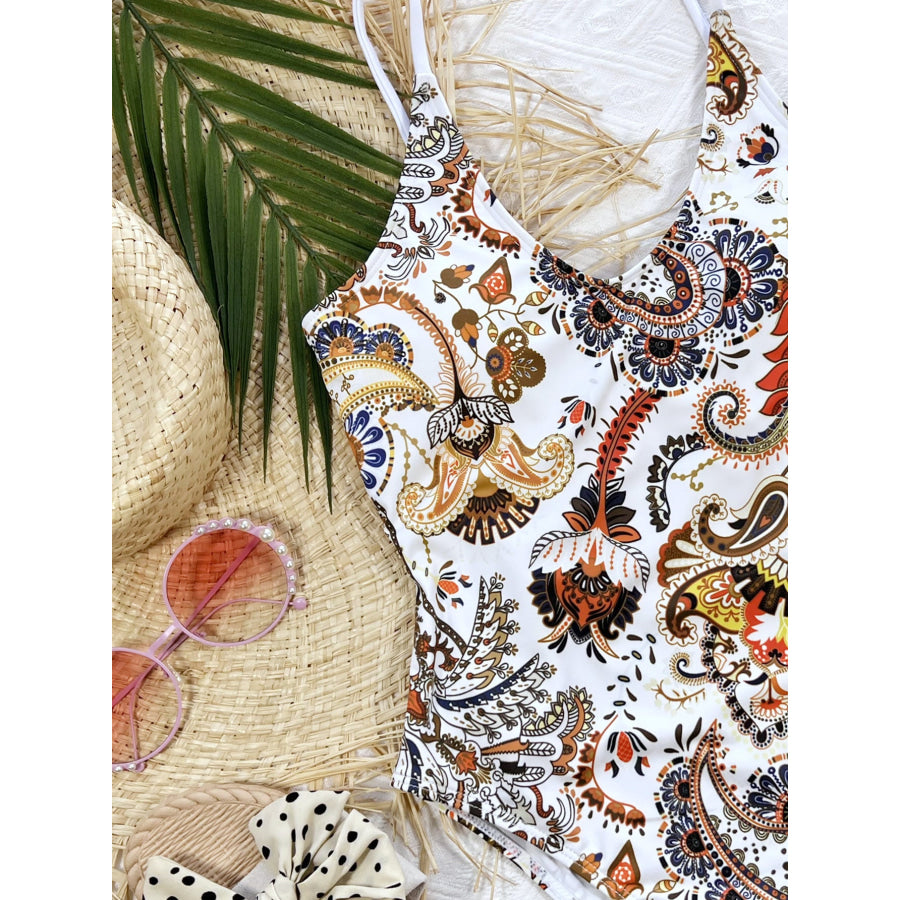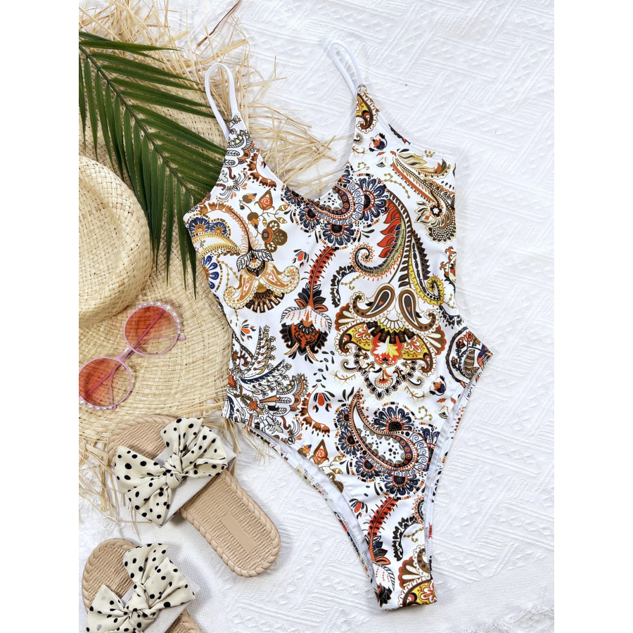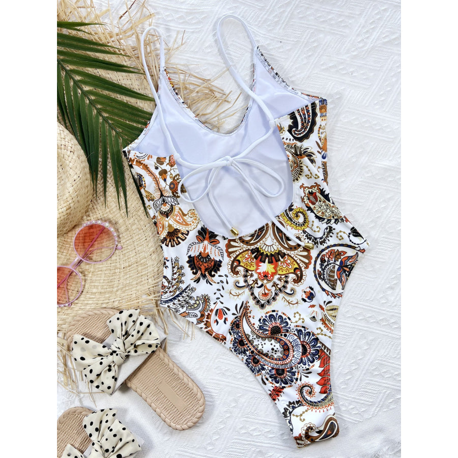 Printed Tie Back Scoop Neck One-Piece Swimsuit
