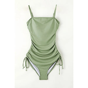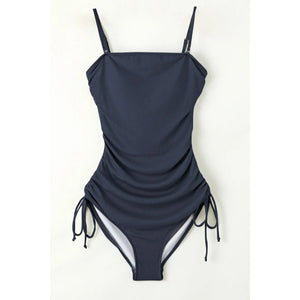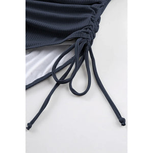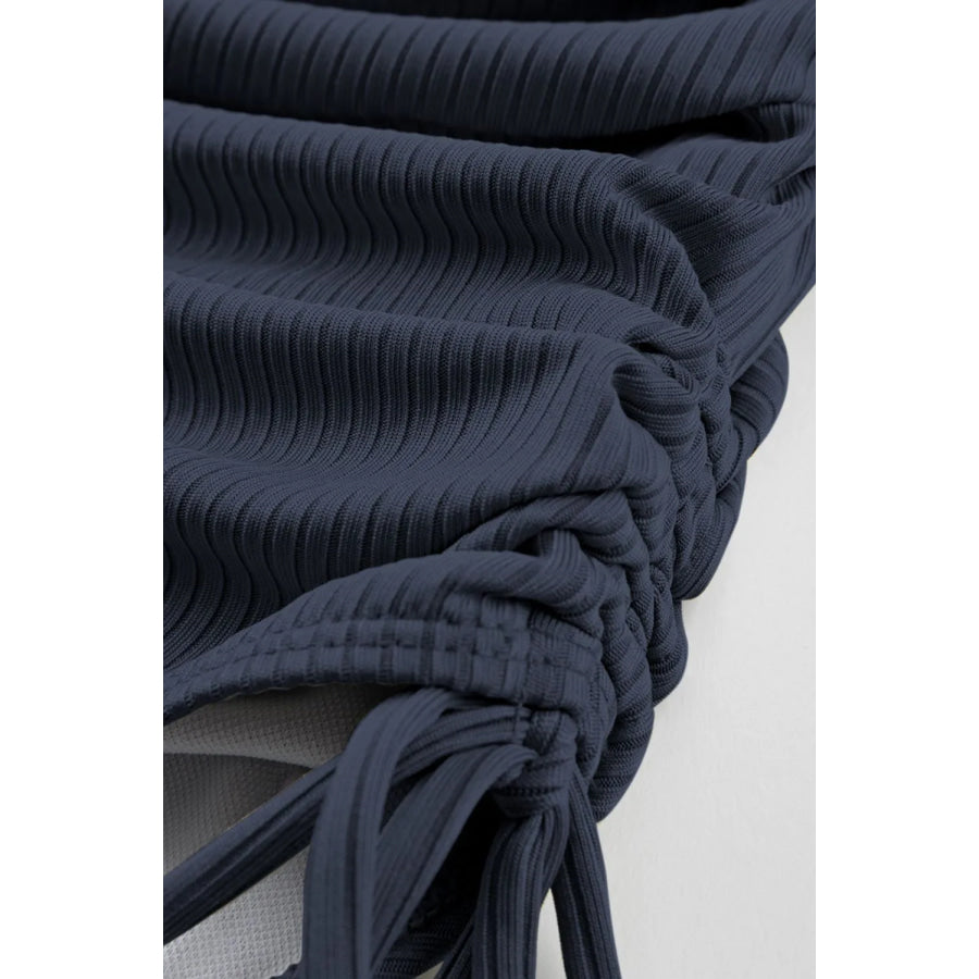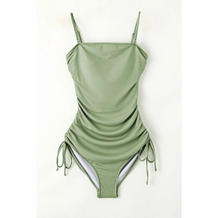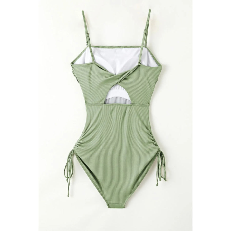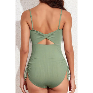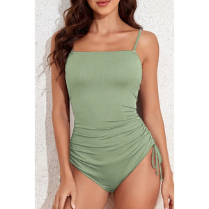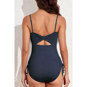 Ribbed Drawstring Sides Cutout One Piece Swimsuit