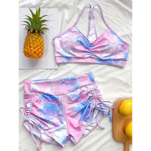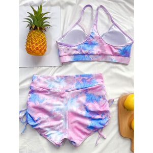 Tie-Dye Spaghetti Strap Top and Drawstring Shorts Swim Set