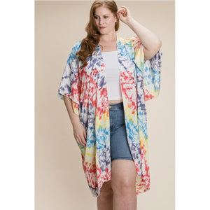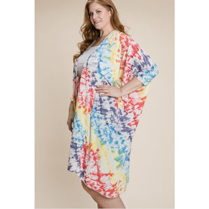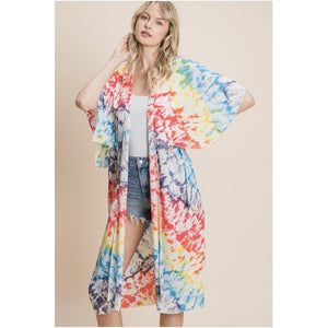 Wool Dobby Tie Dye Open Cardigan, Beach Coverup