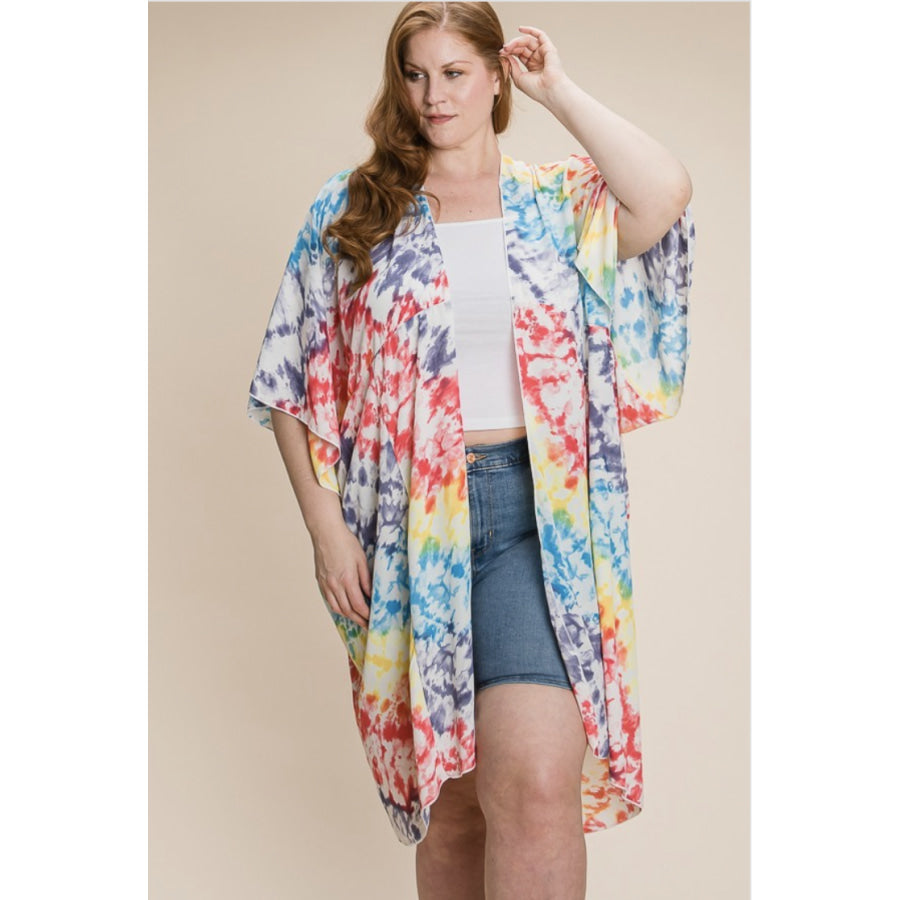 WOOL DOBBY TIE DYE OPEN CARDIGAN, BEACH COVERUP