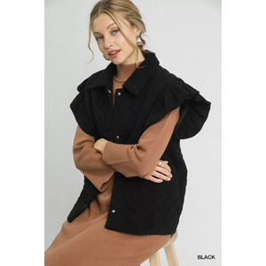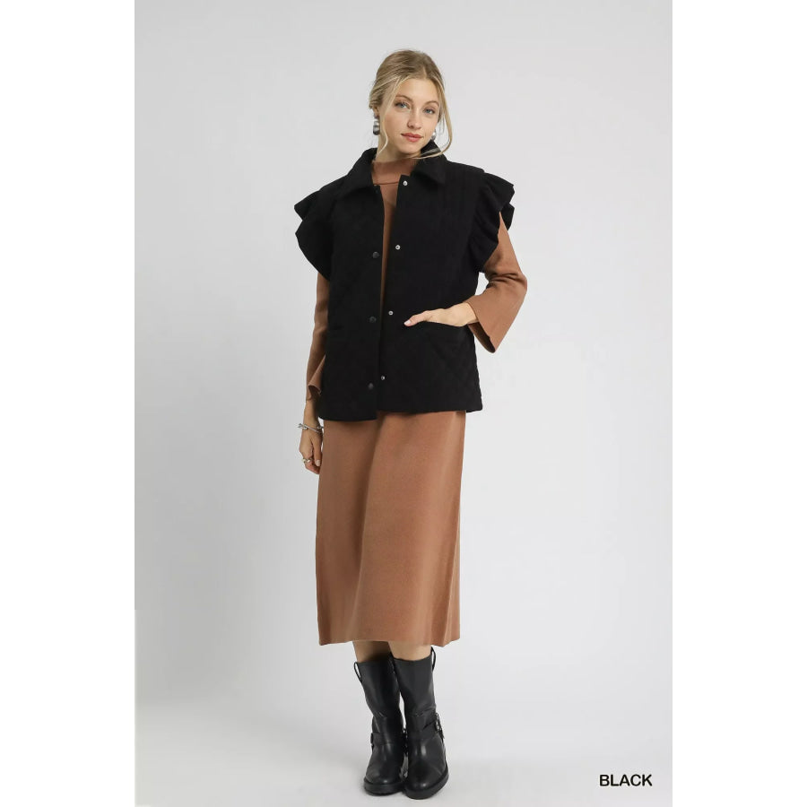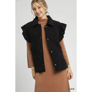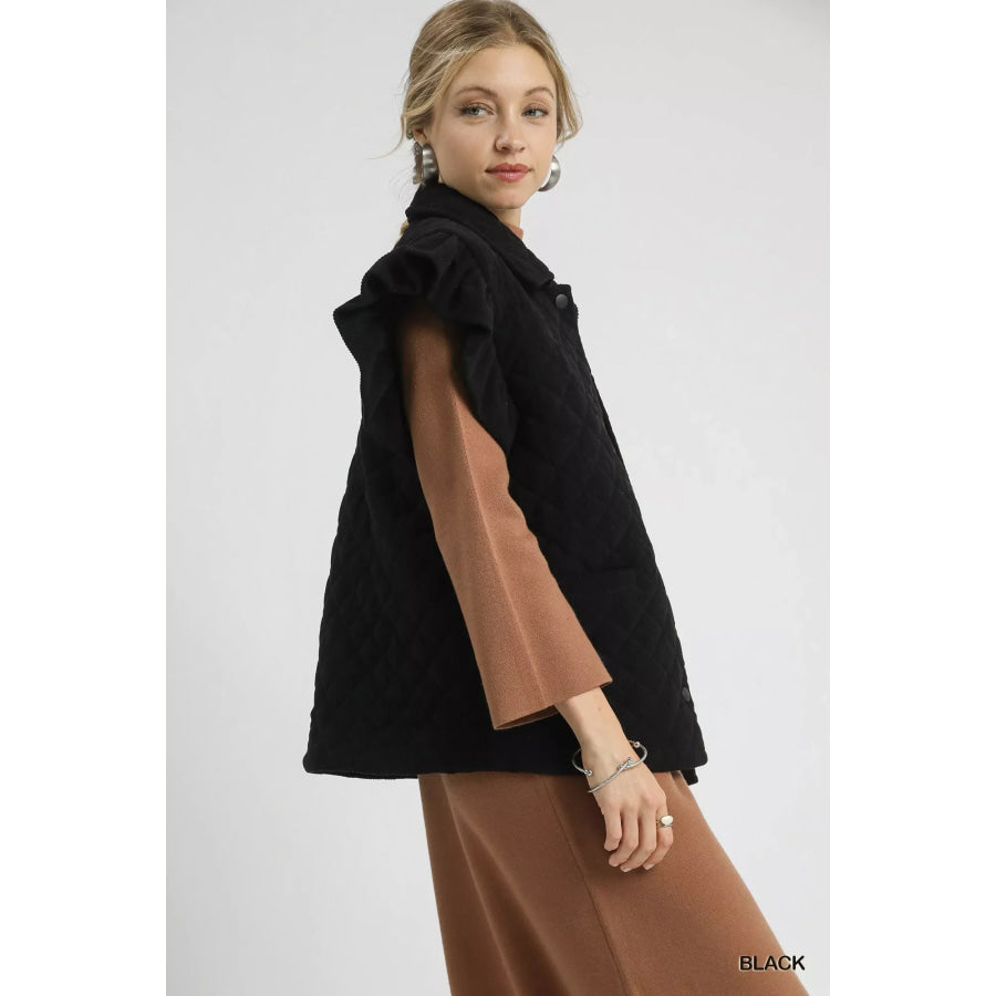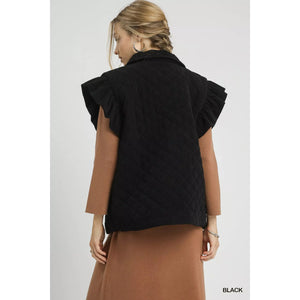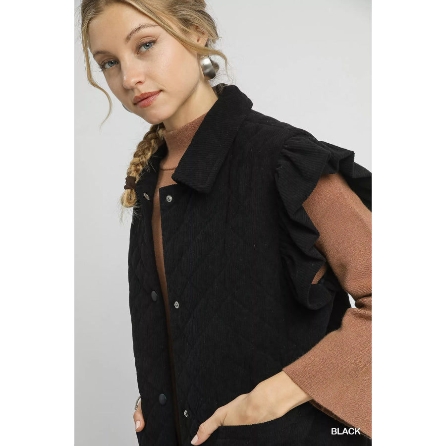 Umgee Corduroy Quilted Ruffle Sleeve Vest