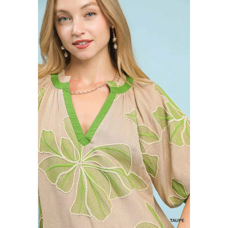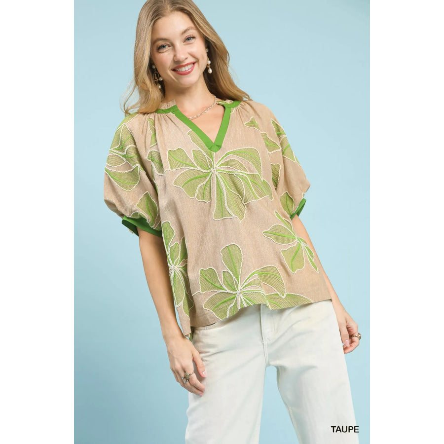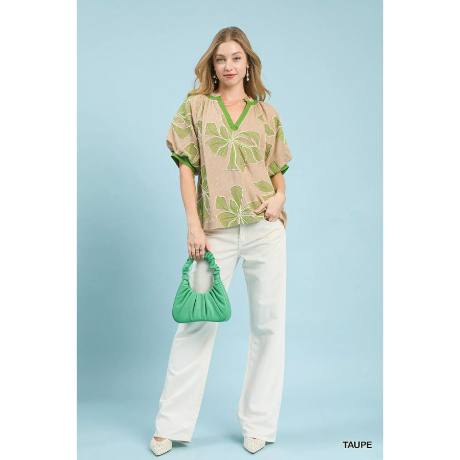 Umgee Embroidered V-Neck Short Sleeve Top