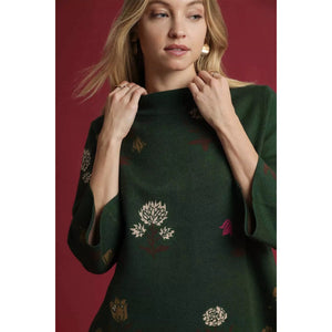 Umgee Floral Mock Neck Knit Top with Wide Sleeves