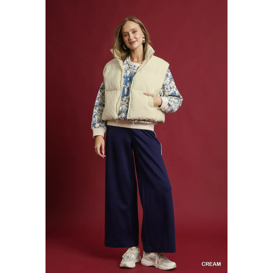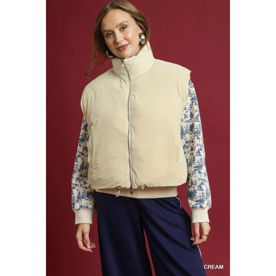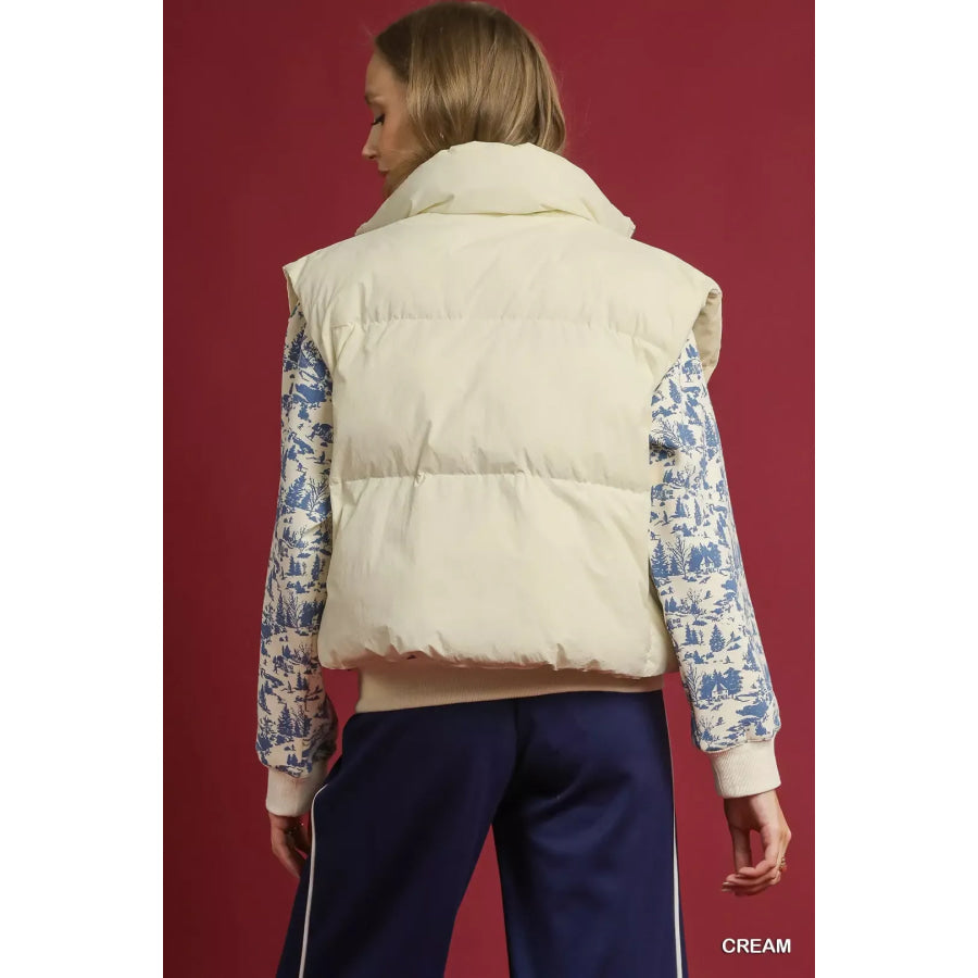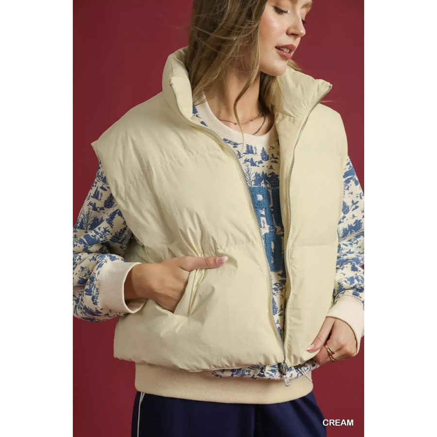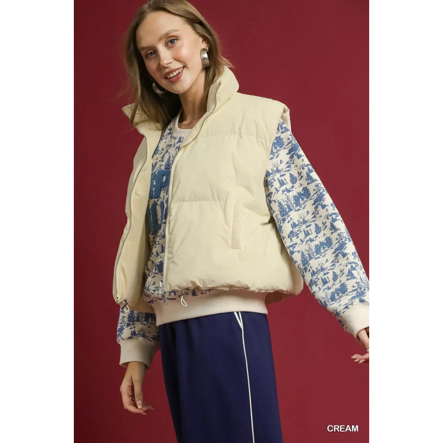 Stay cozy and stylish with this high neck puffer vest featuring a high stand collar for extra warmth. The adjustable drawcord hem allows for a customized fit, while the side pockets offer convenient storage. Easily layer up with the front zip closure and enjoy additional comfort with the lined interior.