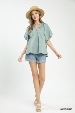 Umgee Lace Inset Puff Sleeve Boho Blouse