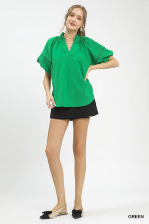 The Lace Trim Peasant Top is a romantic and feminine addition to your wardrobe. Featuring delicate lace trim detailing, this top exudes a bohemian charm. The peasant-style silhouette with billowy sleeves adds a touch of whimsy and elegance. Perfect for a casual day or a special occasion, this top can be dressed up or down with ease. Pair it with jeans and sandals for a relaxed weekend look, or with a skirt and heels for a more polished ensemble. This top is sure to elevate your style with its chic and effortless design.