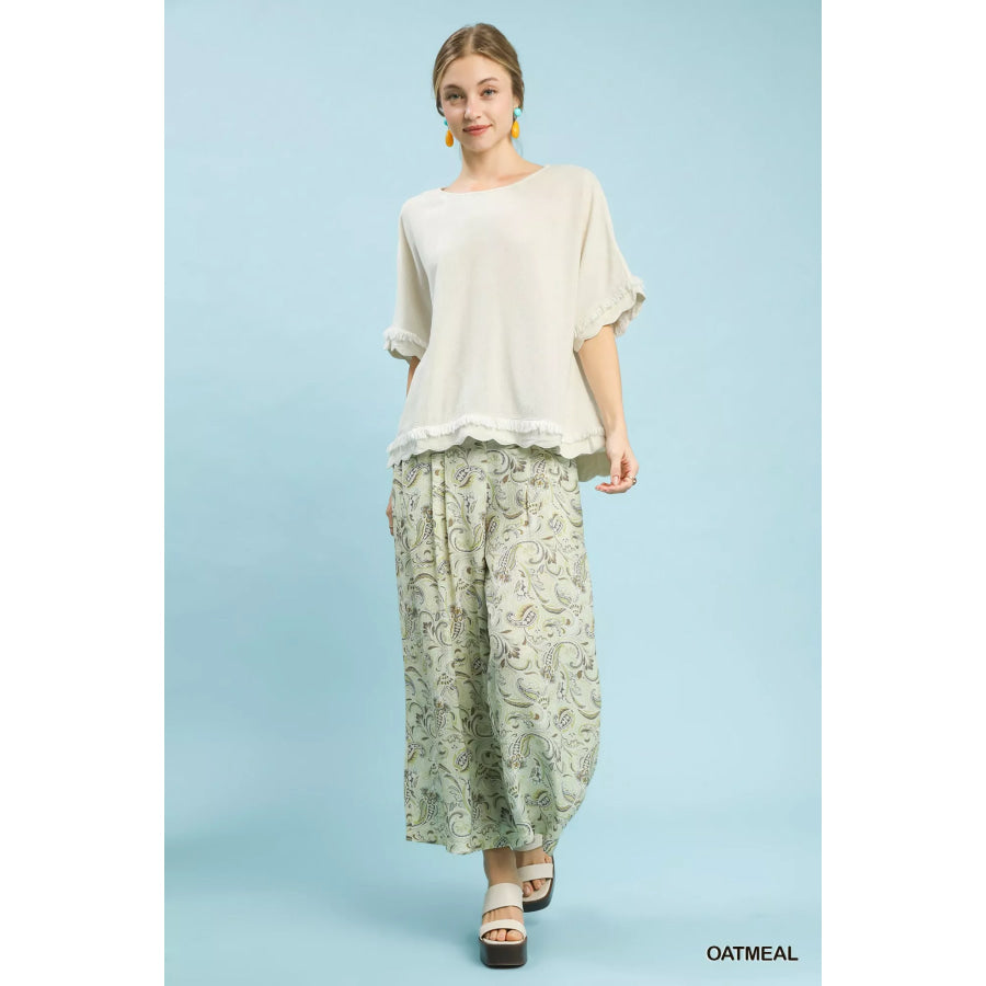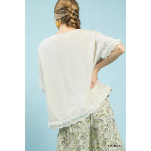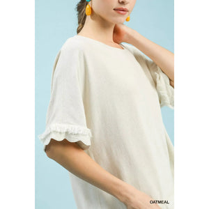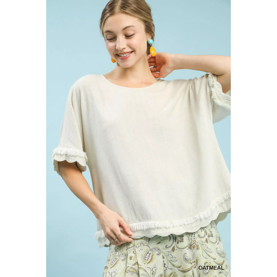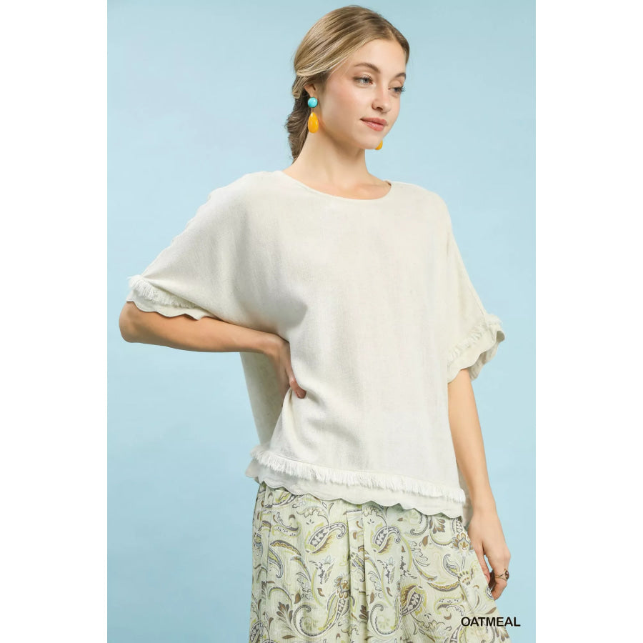 Umgee Linen Frayed Hem Scallop Edge Top