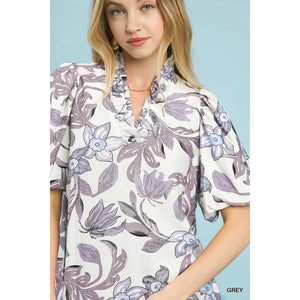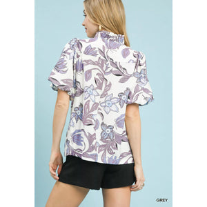 Umgee Lush Blossom Print Puff Sleeve Top with Ruffle Trim Detail