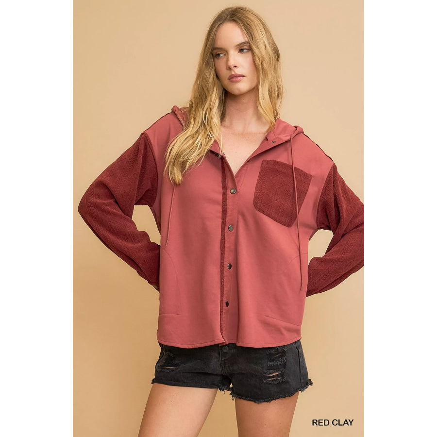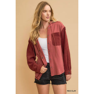 Stay cozy and stylish in the Washed French Terry Shacket, crafted from soft French Terry material for a comfortable feel. The textured knit details add a touch of uniqueness and depth to the shacket's design. Featuring a mineral washed finish, this shacket offers a trendy and vintage look. Perfect for layering over your favorite outfits, it provides both warmth and style. Whether you're running errands or lounging at home, the Washed French Terry Shacket is a versatile and fashionable piece for your wardrobe.