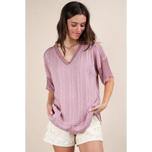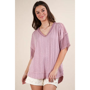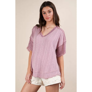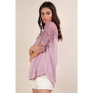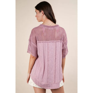 VERY J Oversized Contrast Knit Comfy Casual Top